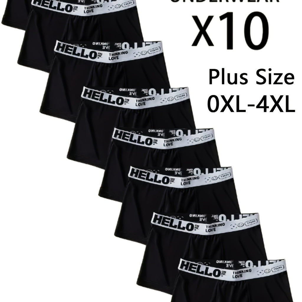 10pcs Men'S Boxer Briefs - Bold "Hello" Print Underwear, Plus Size up to 4XL (XXL ), Quick-Dry & High-Elasticity Gym, Workout, Everyday Underwear - Non-Transparent Athletic Boxers for Active Lifestyles - Bulk Pack Value Bundle, Boxer Shorts, Workout Unde