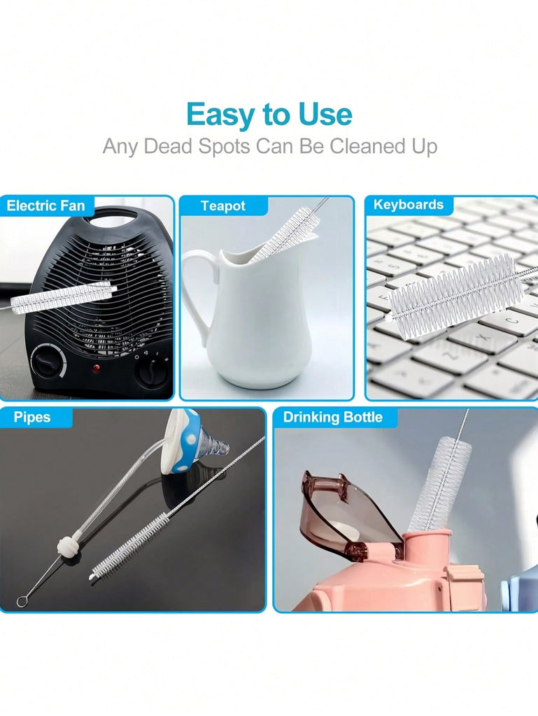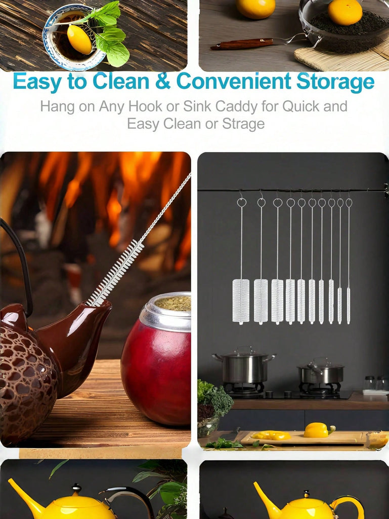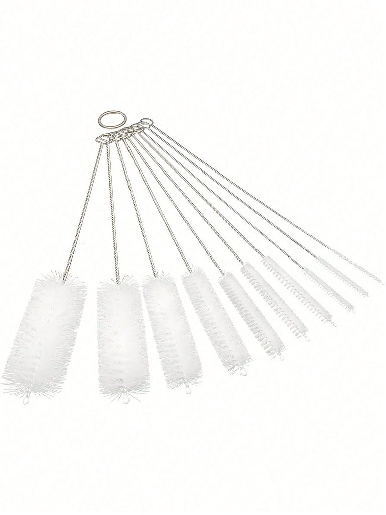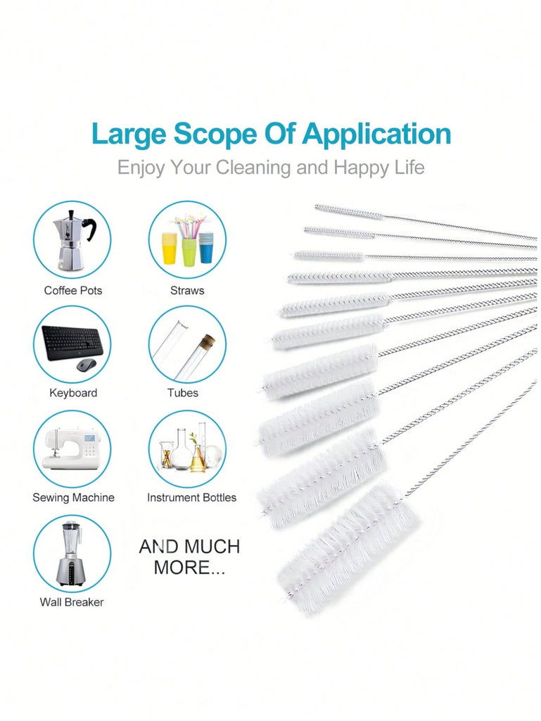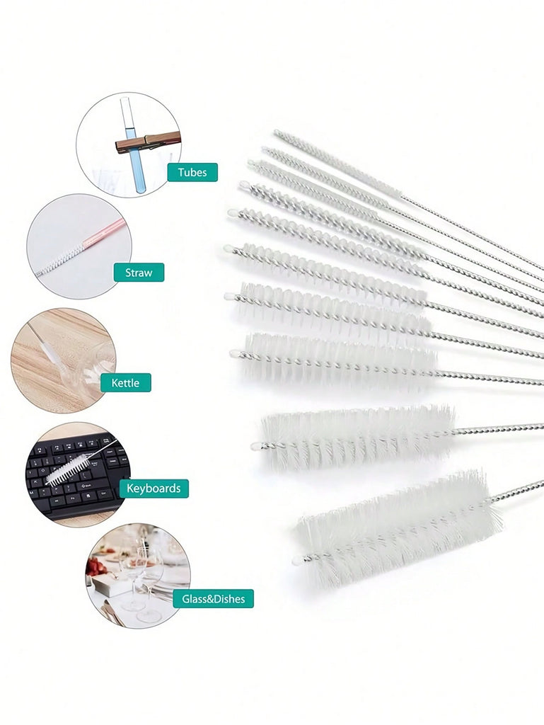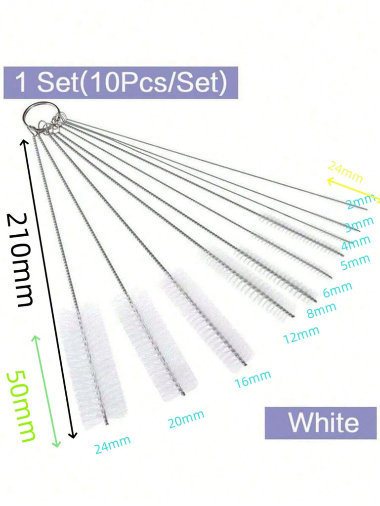10Pcs/Set Different Sizes Nylon Straw Cleaning Brush, Stainless Steel Long Handle Pipe Cleaner, Bottle Brush Cleaning Tool, Suitable For Cleaning Teapots, Cups, Kettles, Straws, Pipes, Bottles, Test Tubes And Glassware, Suitable For Kitchen, Bathroom, La