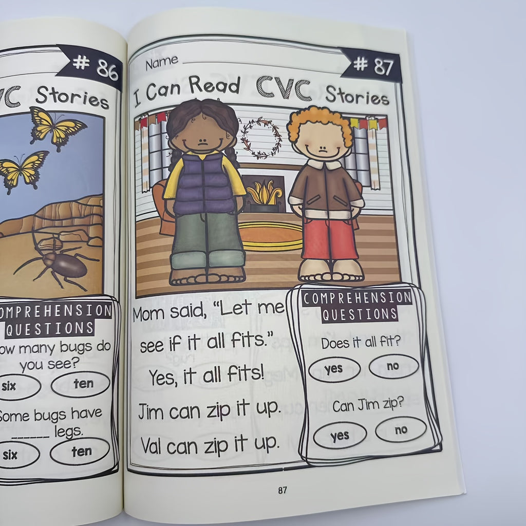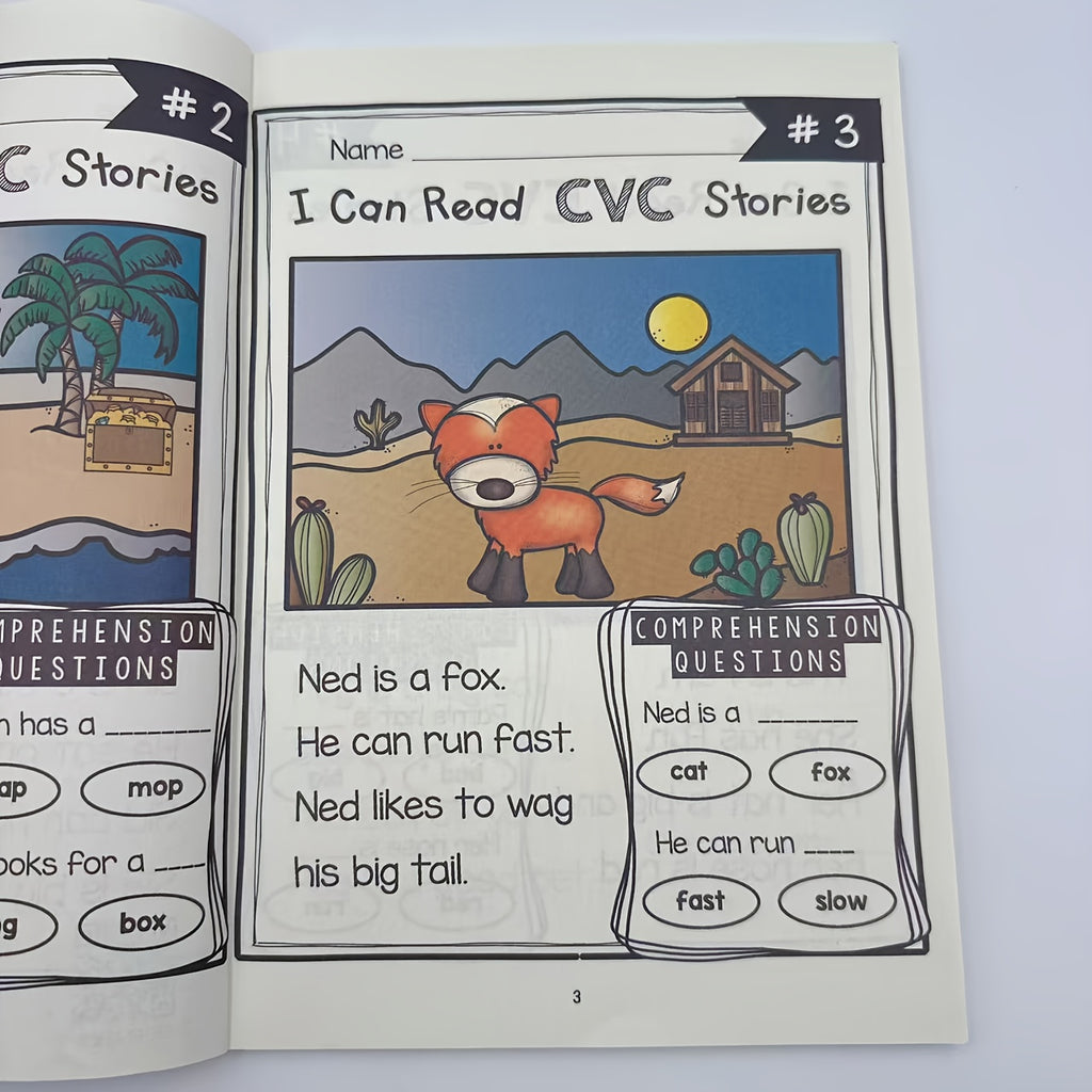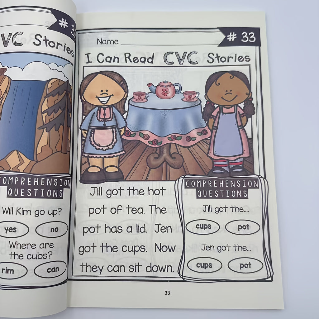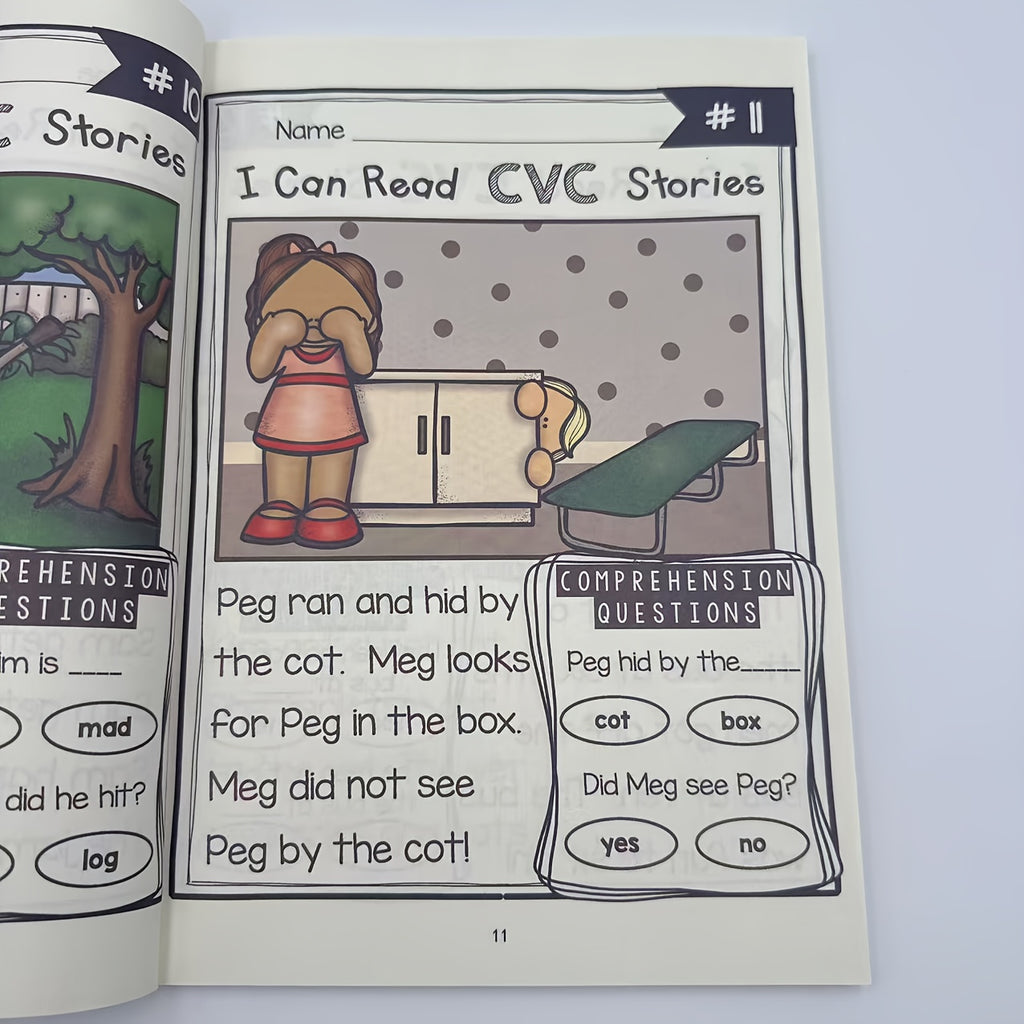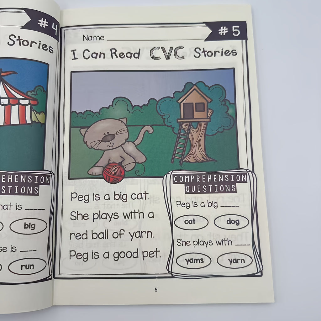 120-Page 240-Story Advanced CVC Reading Comprehension Workbook - Fun Phonics Practice with Realistic Illustrations, Step-by-Step Guidance & Interactive Activities for Youngsters & Adults, White Paper, CVC Word Building, Storytelling, Detailed Illustratio