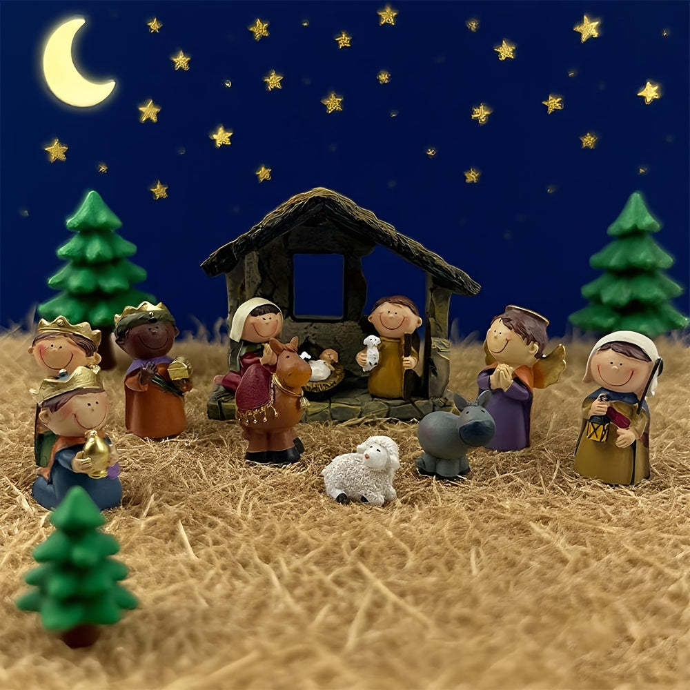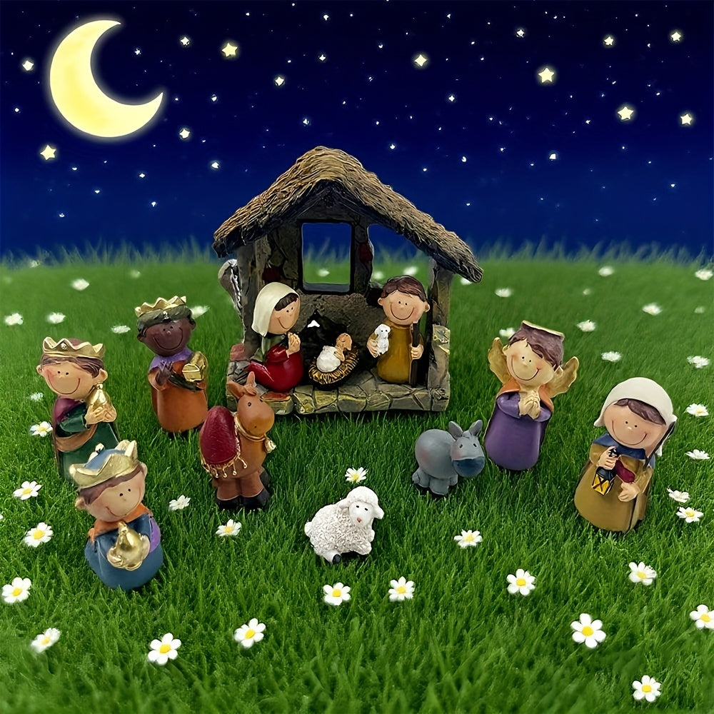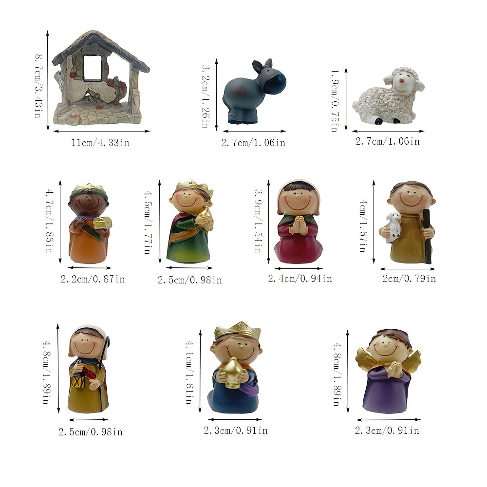12pcs Small Nativity Set Resin Small Christmas Nativity Figurine Christmas Little Nativity Playset Figurine Christmas Manger Scene with Jesus Stable for Xmas Tabletop Indoor Decoration