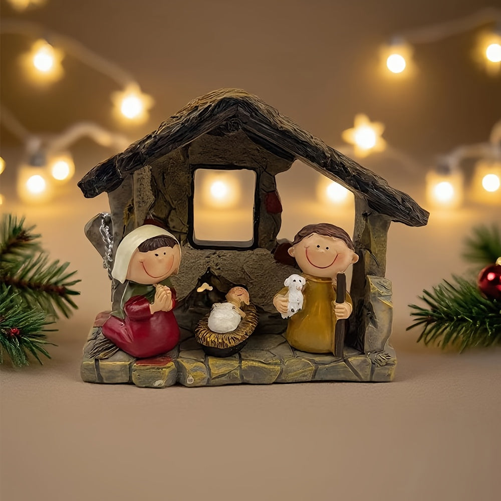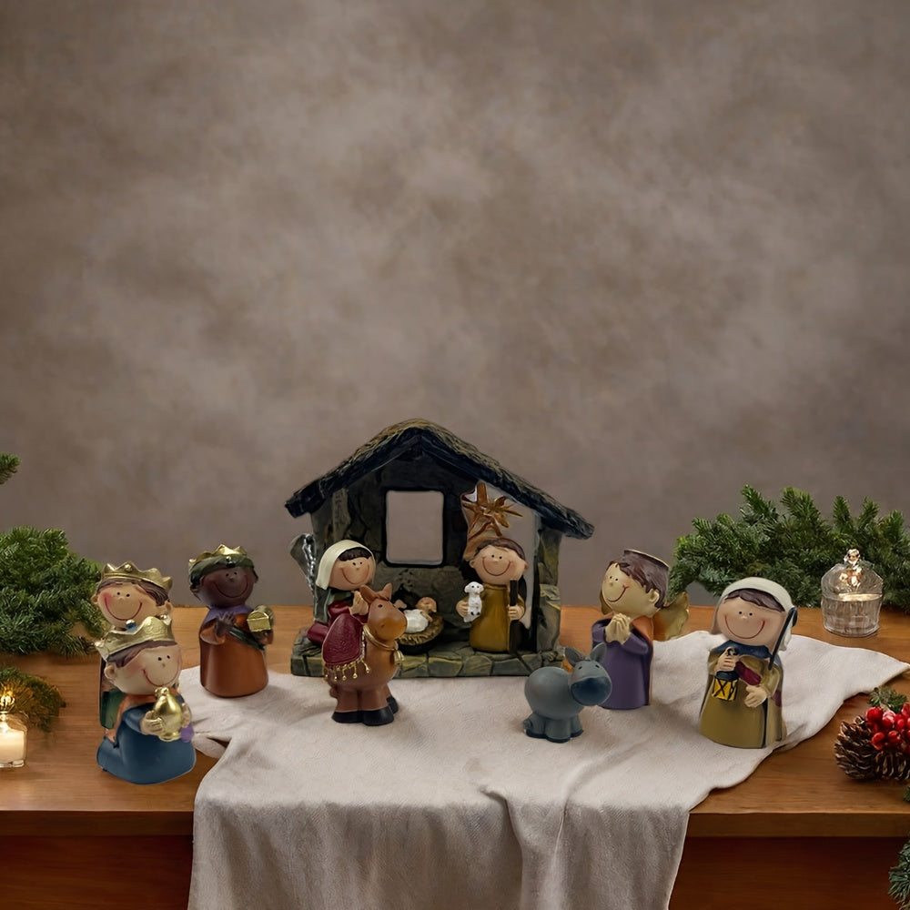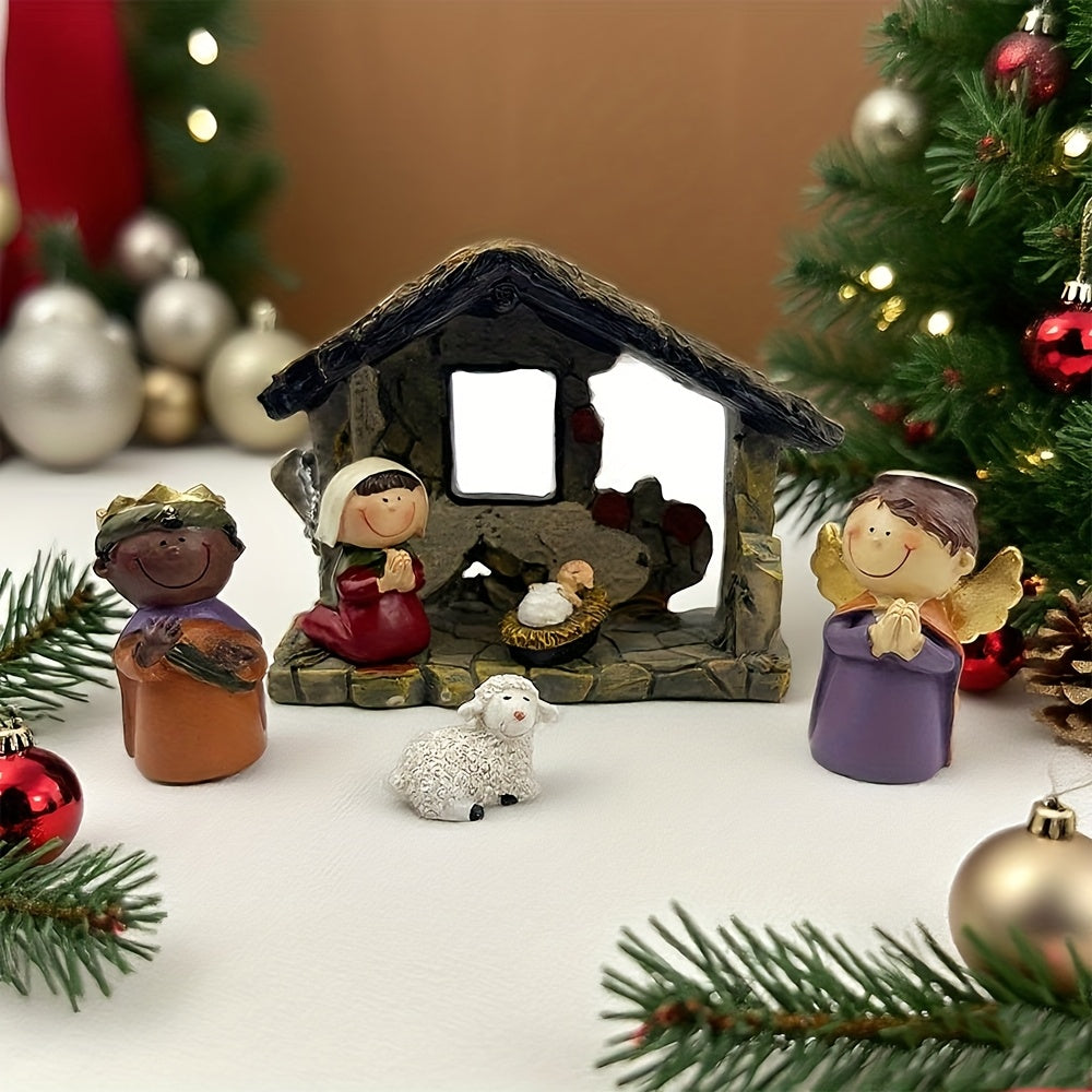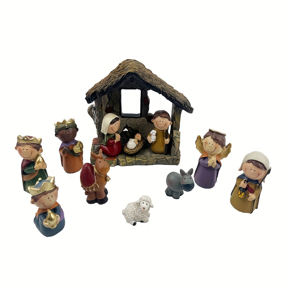 12pcs Small Nativity Set Resin Small Christmas Nativity Figurine Christmas Little Nativity Playset Figurine Christmas Manger Scene with Jesus Stable for Xmas Tabletop Indoor Decoration