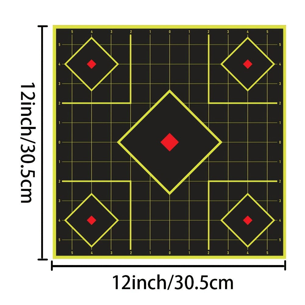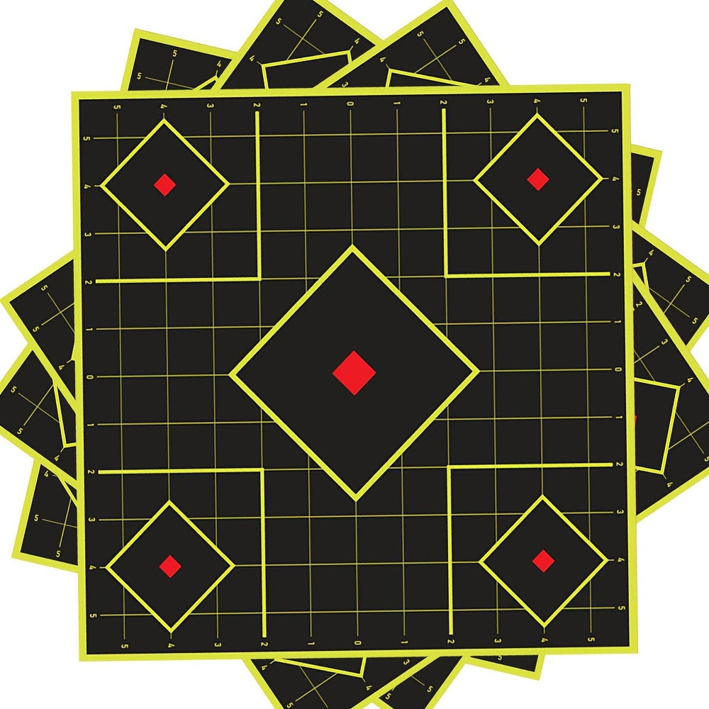 12"X12" Sight in Splatterburst Target - Instantly See Your Shots Burst Bright Florescent Yellow Upon Impact! - Hunting Practice Targets - Paper Material