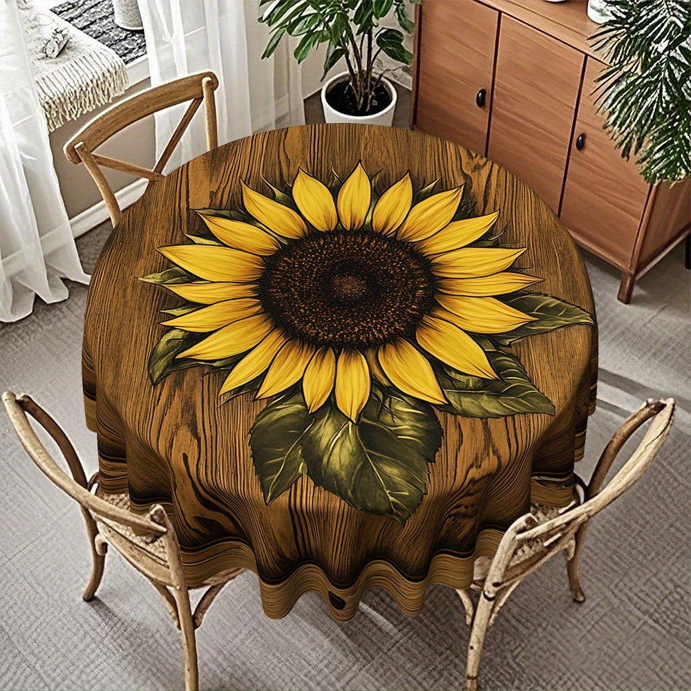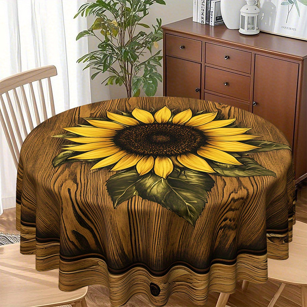152.4x177.8 cm Round Polyester Tablecloth - Sunflower & Wood Grain Design, Machine-Made Country Style Table Cover for Dining Room, Living Room, Picnic, Parties, Mother’s Day, Thanksgiving, Spring & Summer Decor, Picnic Table Cover | Sunflower Pattern | Du