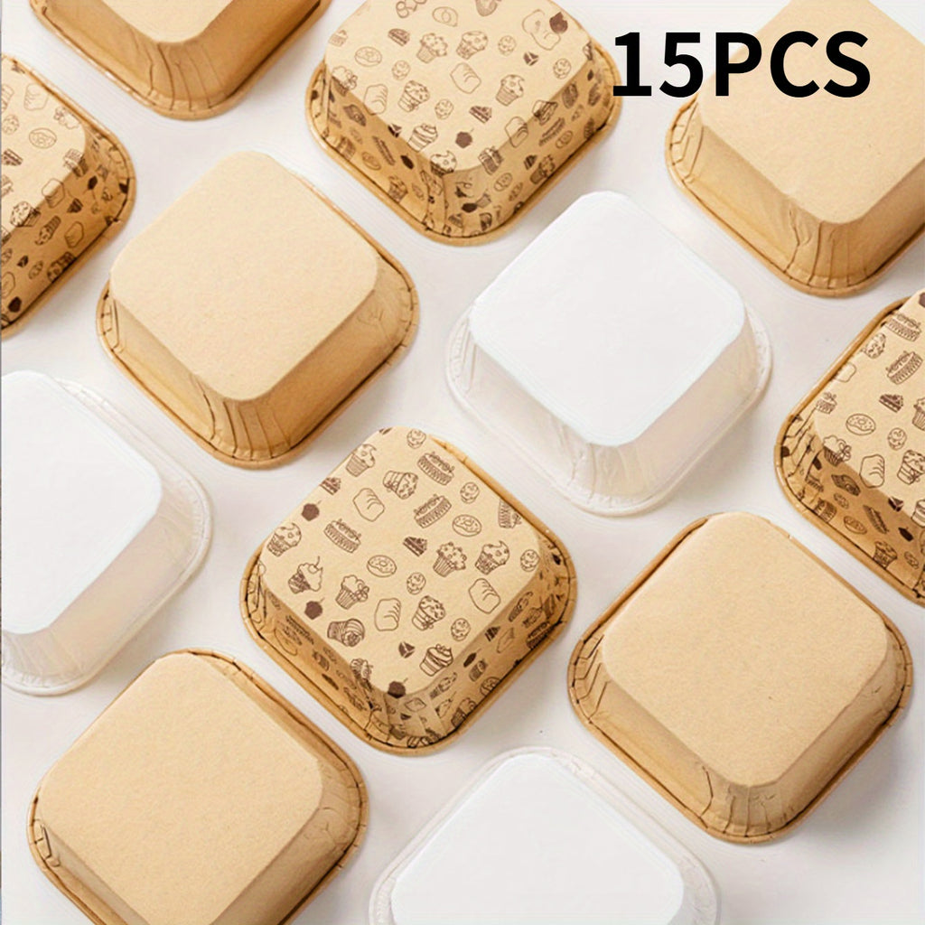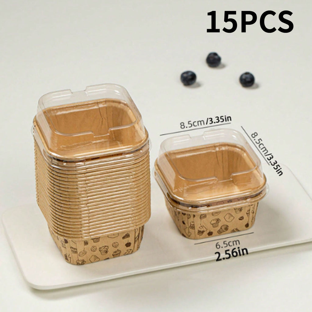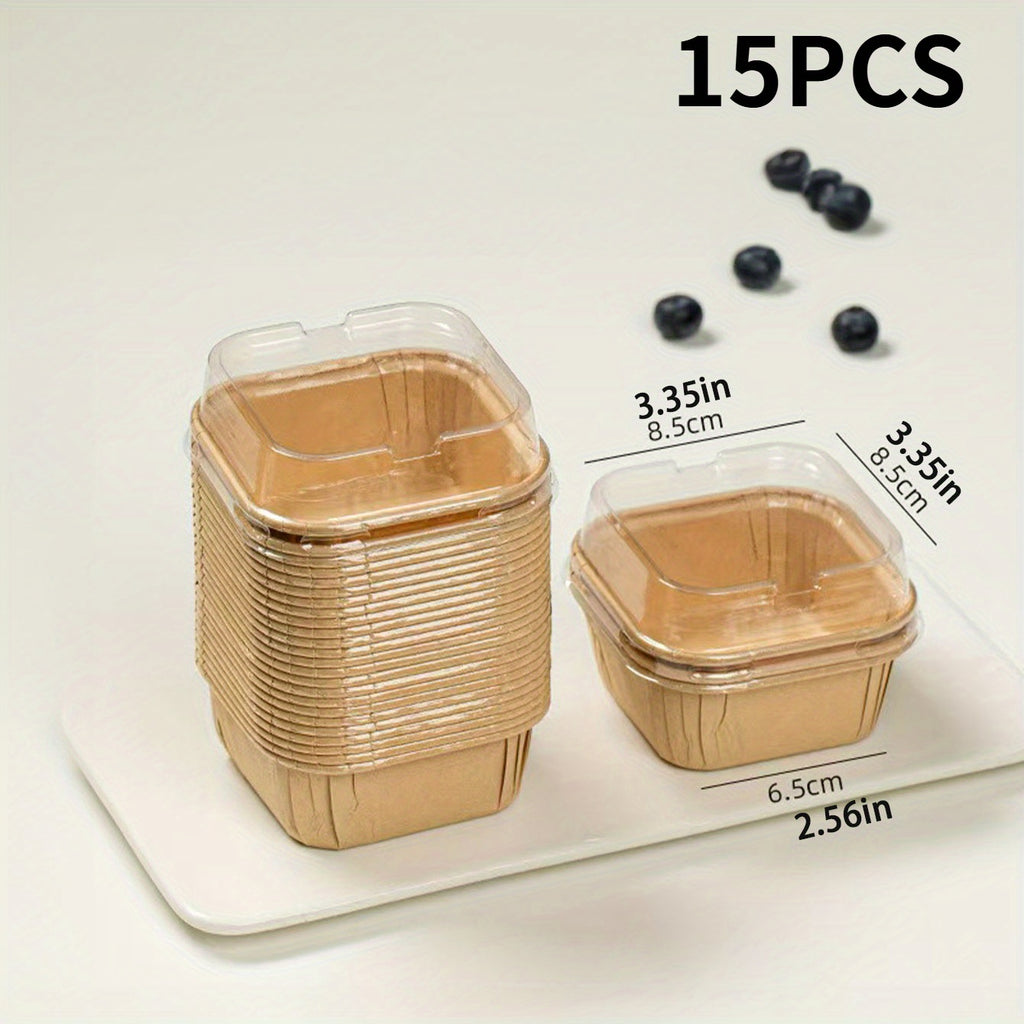 15pcs Square Cake Disposable Paper Cups with Lids, Muffin Roll Top Pouches for Home Kitchen, Cake Baking Food Packaging Boxes