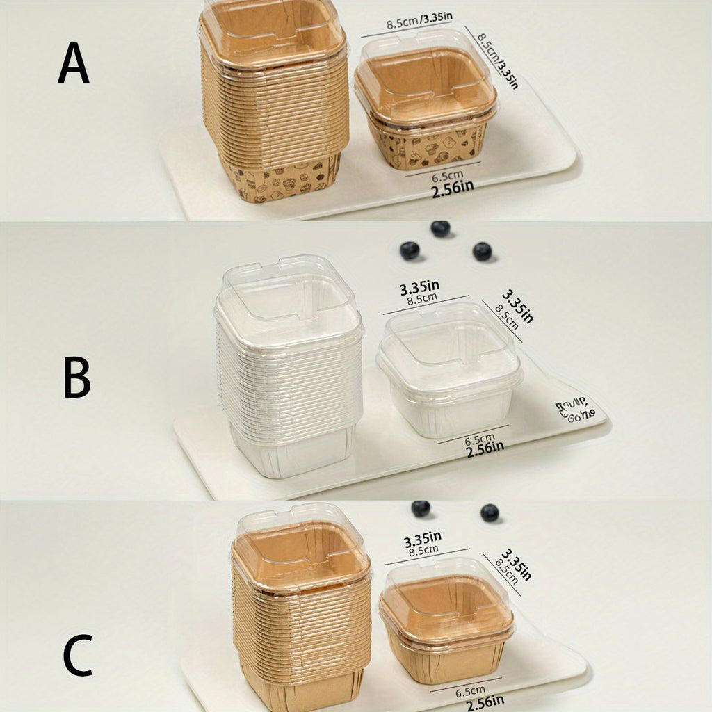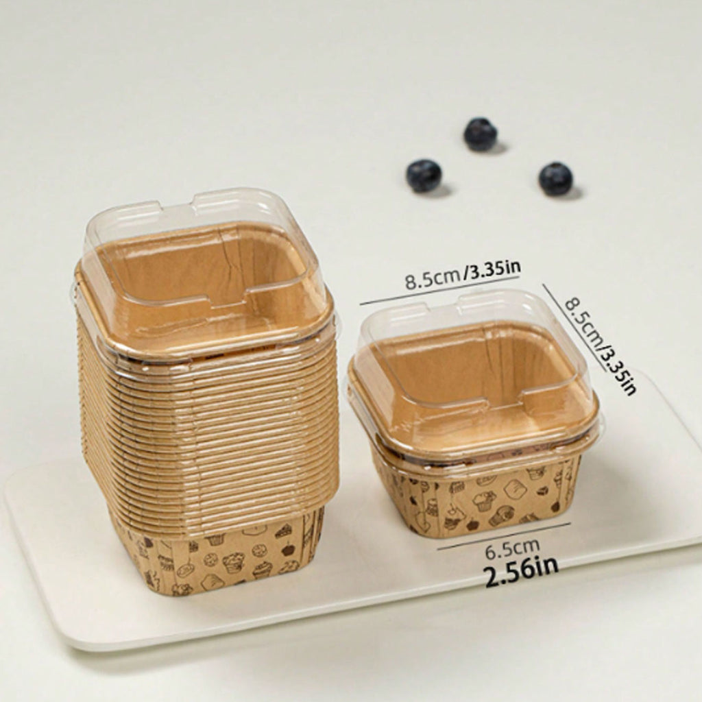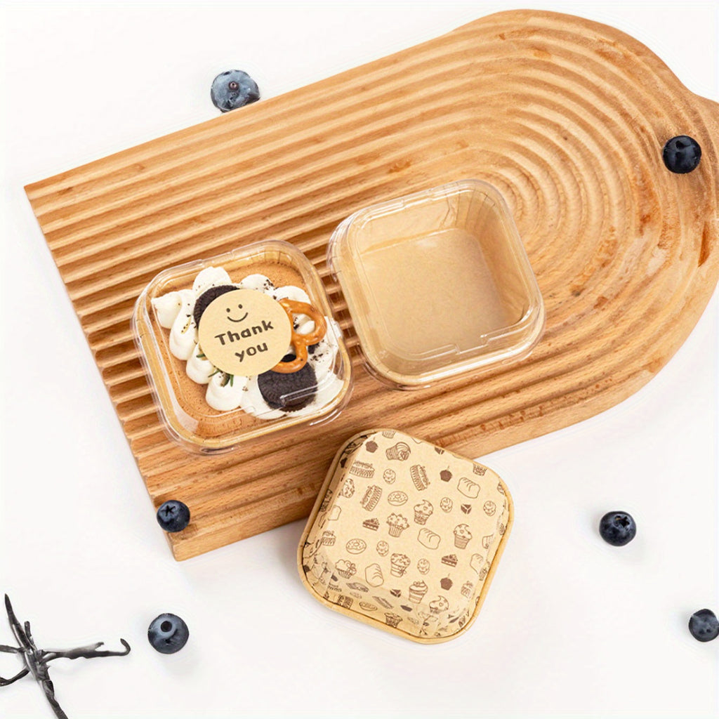 15pcs Square Cake Disposable Paper Cups with Lids, Muffin Roll Top Pouches for Home Kitchen, Cake Baking Food Packaging Boxes