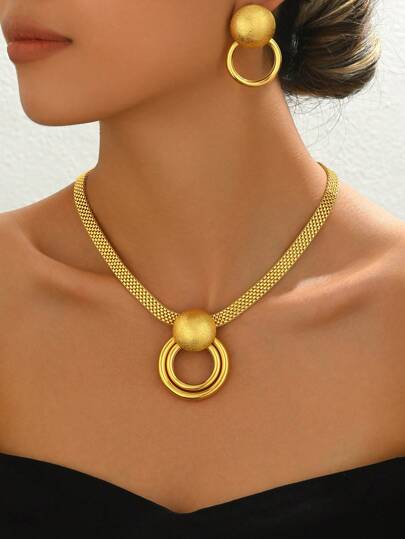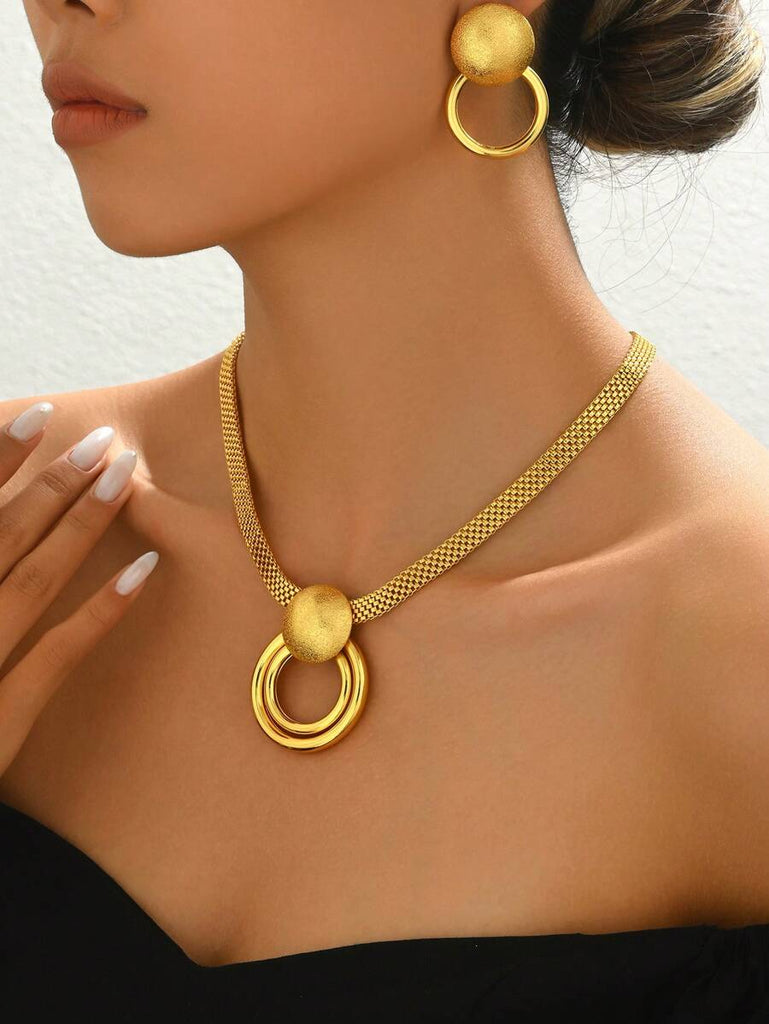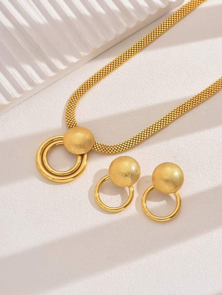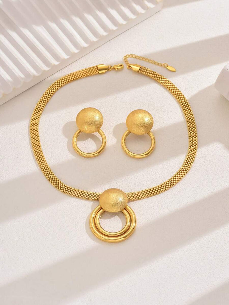 18K Gold Plated 3pcs Fashion Vintage Casual Elegant Women Necklace And Earrings Set