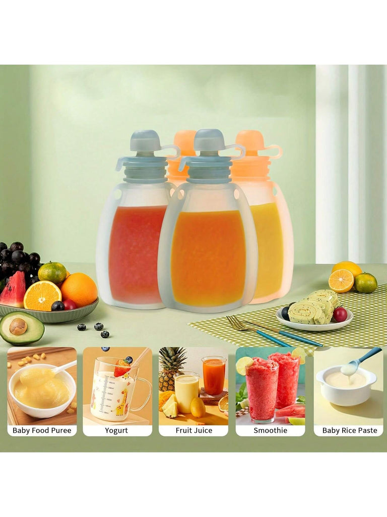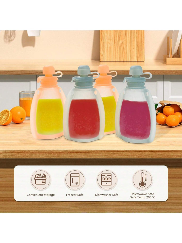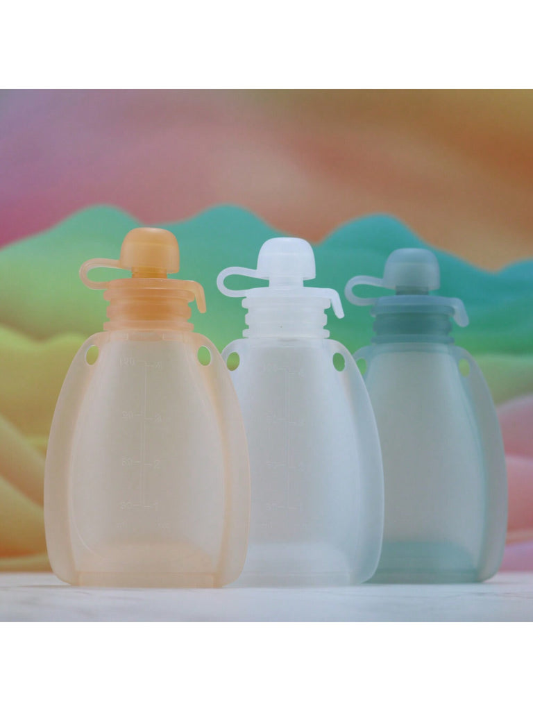 1pc 120ml Reusable Baby Food Pouches Squeeze Silicone Food Storage Pouch Silicone Milk Bag Snack Containers Toddler Food Juice Kids Feeding Pouch Bags Milk Storage Bag