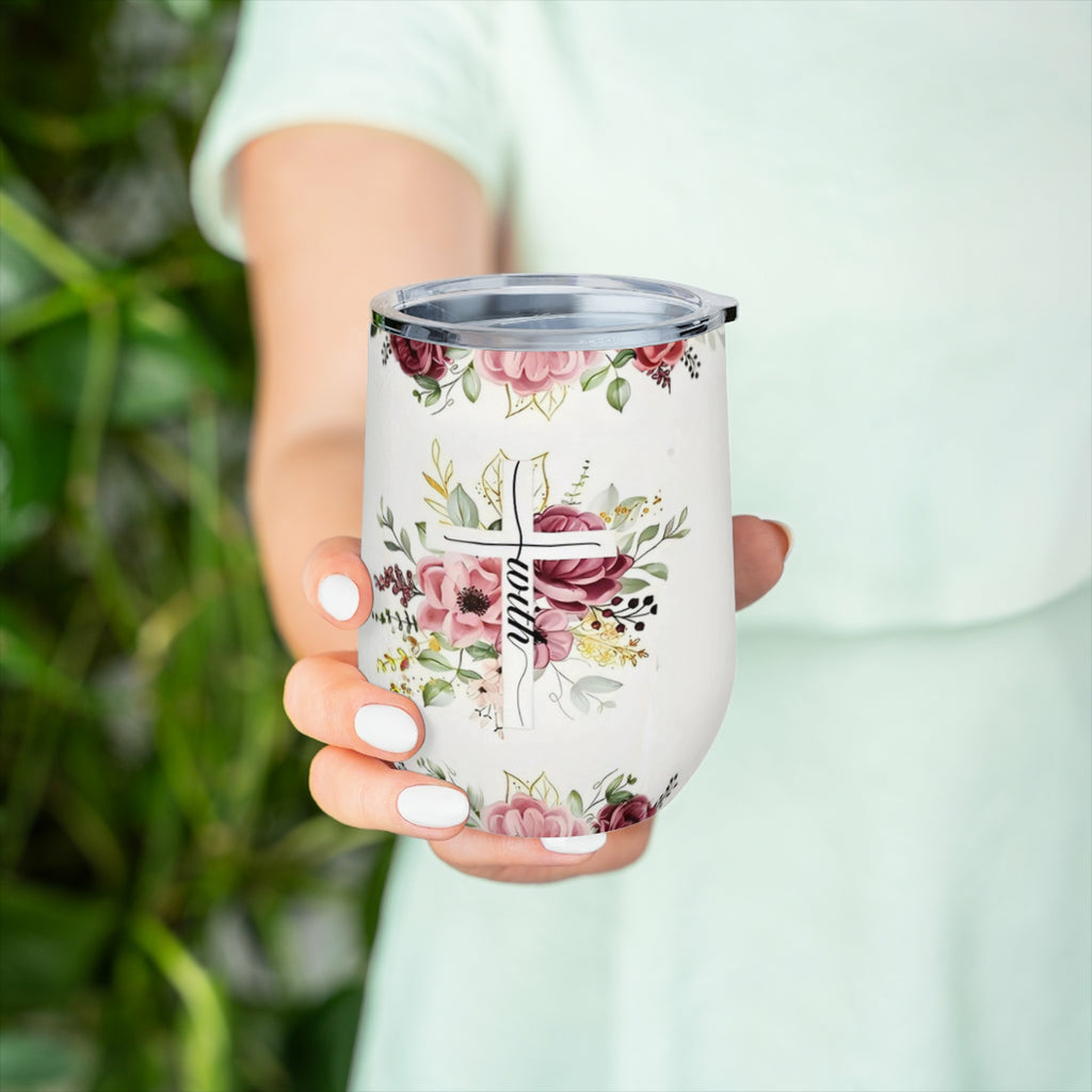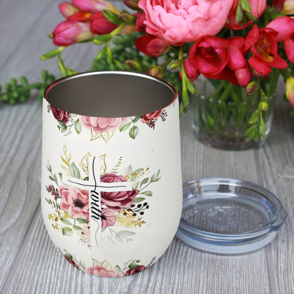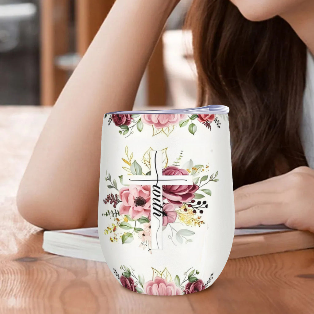 1pc 12oz Floral Stainless Steel Wine Tumbler with Lid - Insulated & Leak-Proof, Reusable Coffee Cup, Ideal for Office, Reading & Holidays - White with Faith & Flower Design, Stainless Steel Coffee Travel Mug