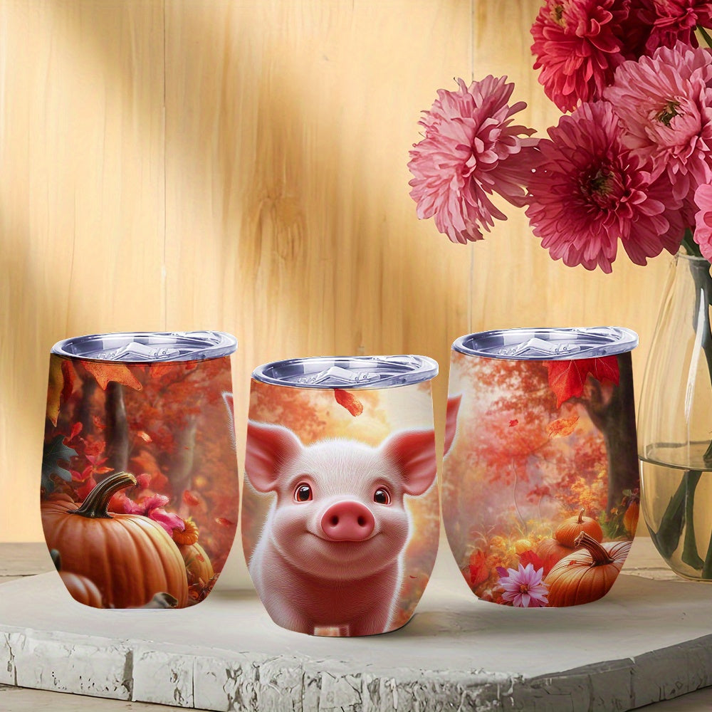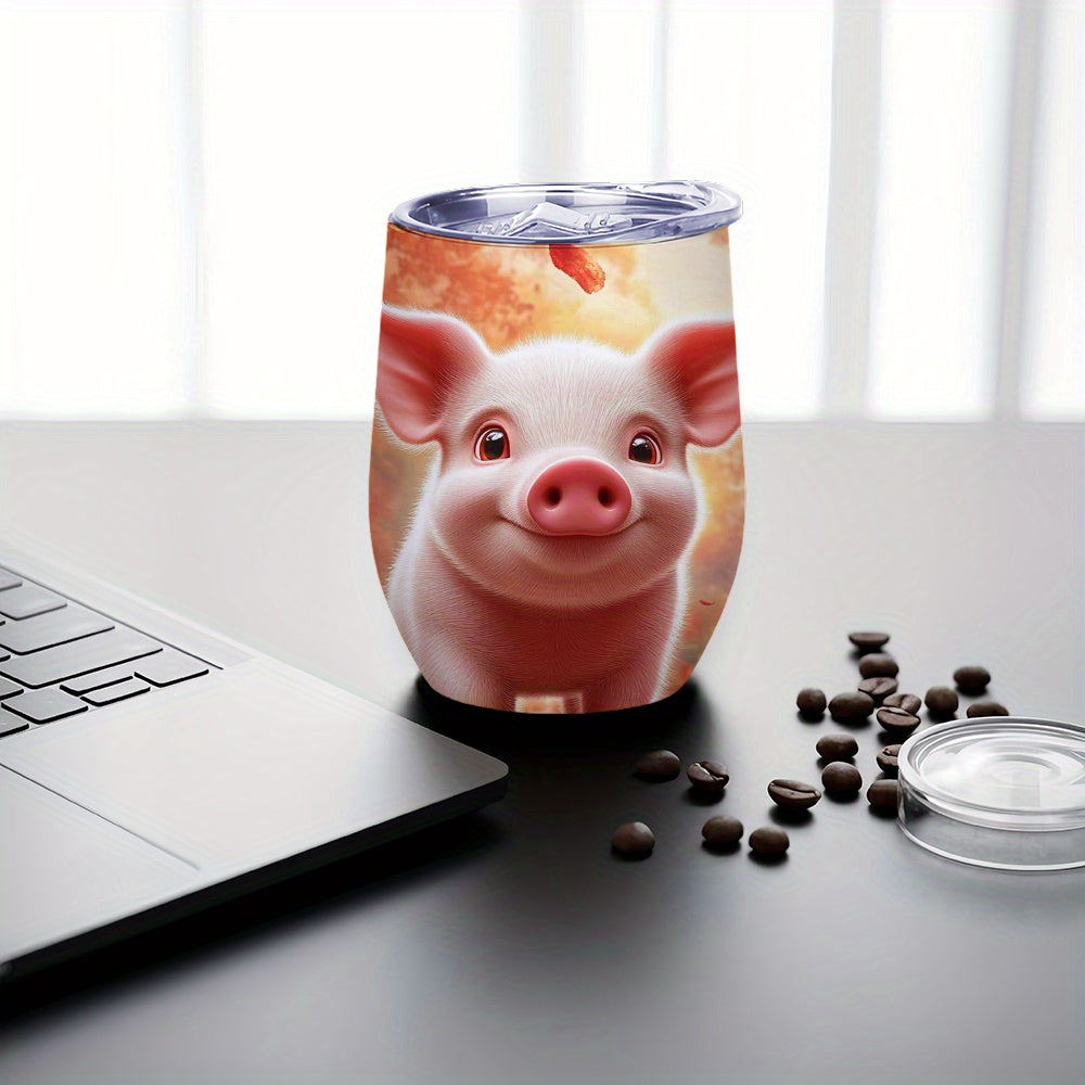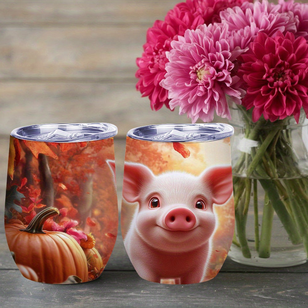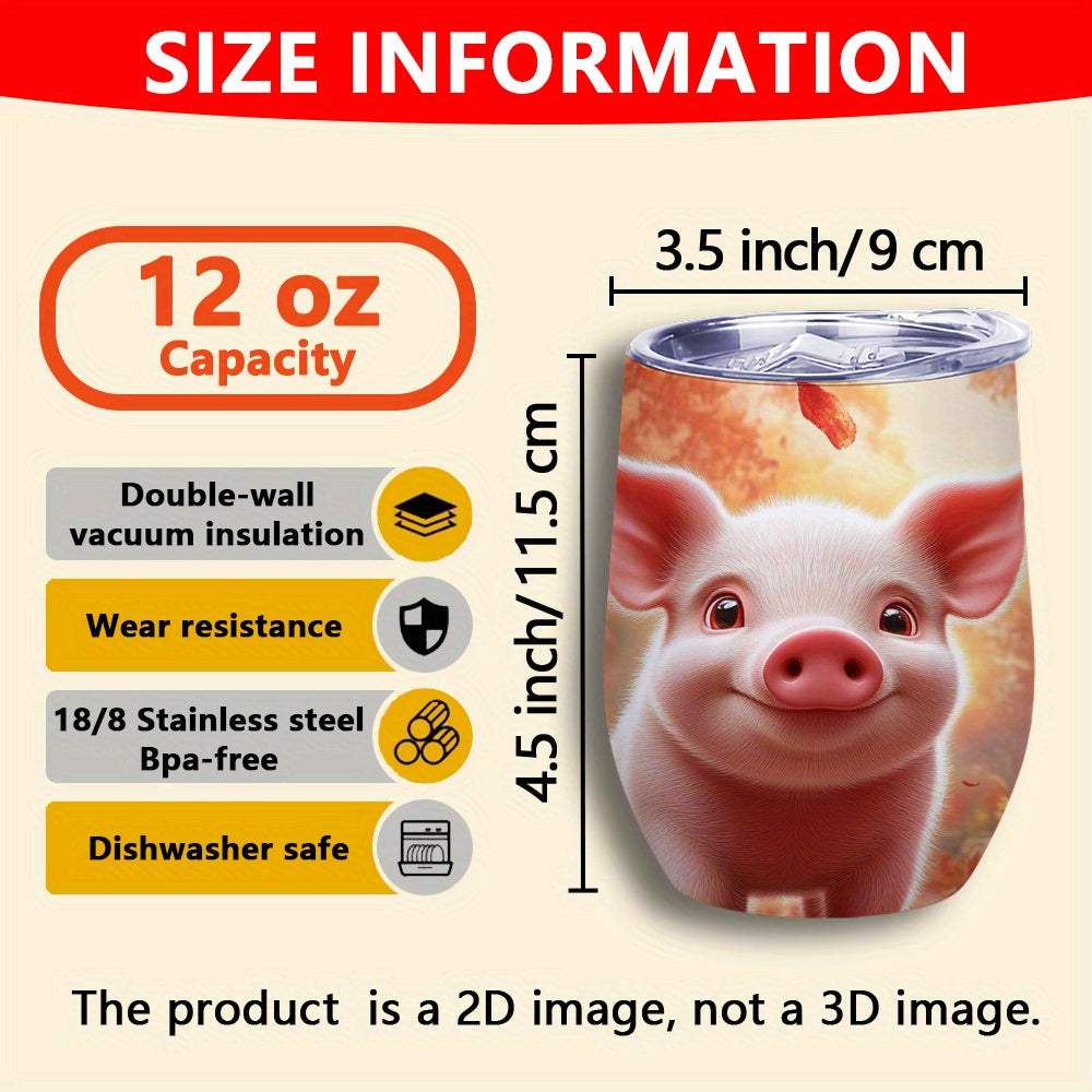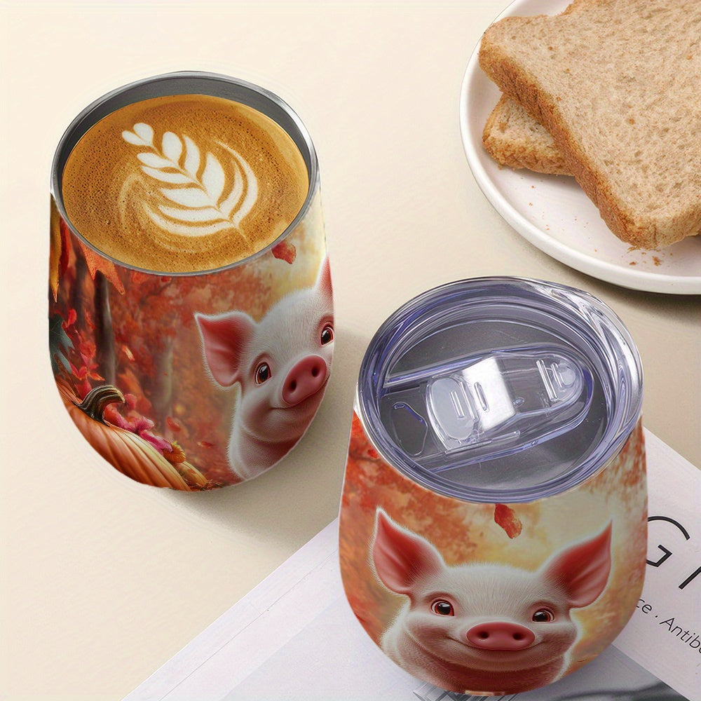 1pc 12oz Pig-Themed Stainless Steel Travel Mug with Spill-Proof Leak-Proof Lid, Double-Wall Reusable Glass for Iced Coffee and Tea, Hand Wash Only, Perfect Gift for Mother'S Day or Autumn Celebrations, Coffee Travel Mug