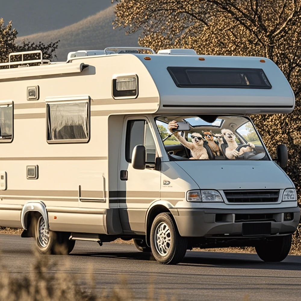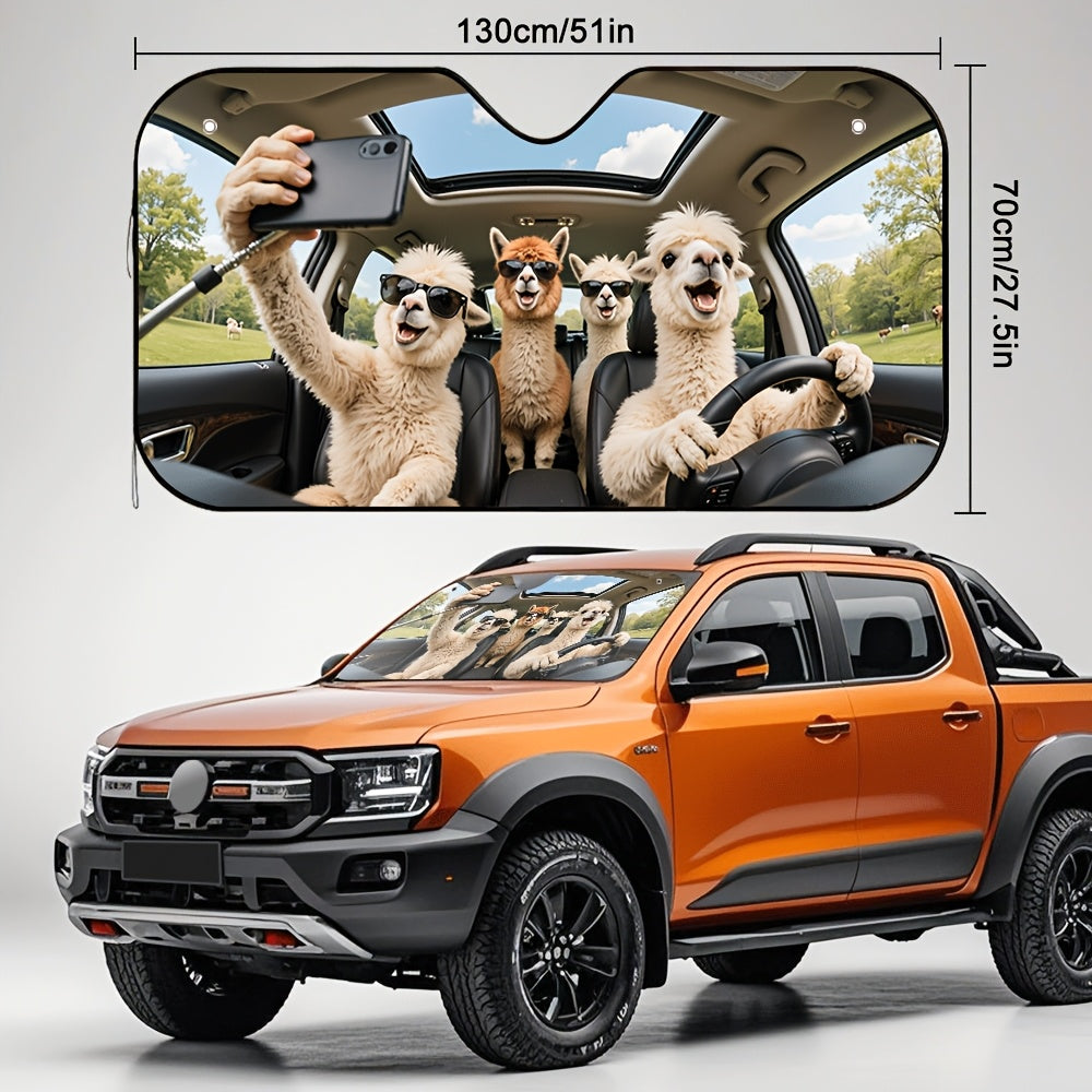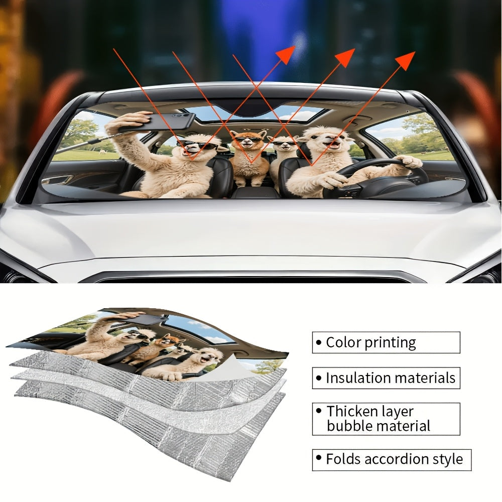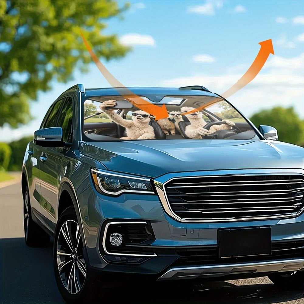1pc Alpaca Roadtrip Car Sun Visor - Fun & Cool Design, Fits Cars, SUVs, Trucks - Keep Your Vehicle Cool, Front Windows, Windshield, Durable Material, Easy to Install, Car Roof Sunshade|Playful Graphic|Easy Installatio
