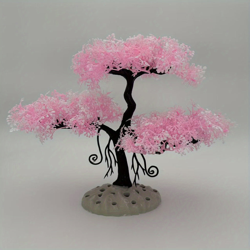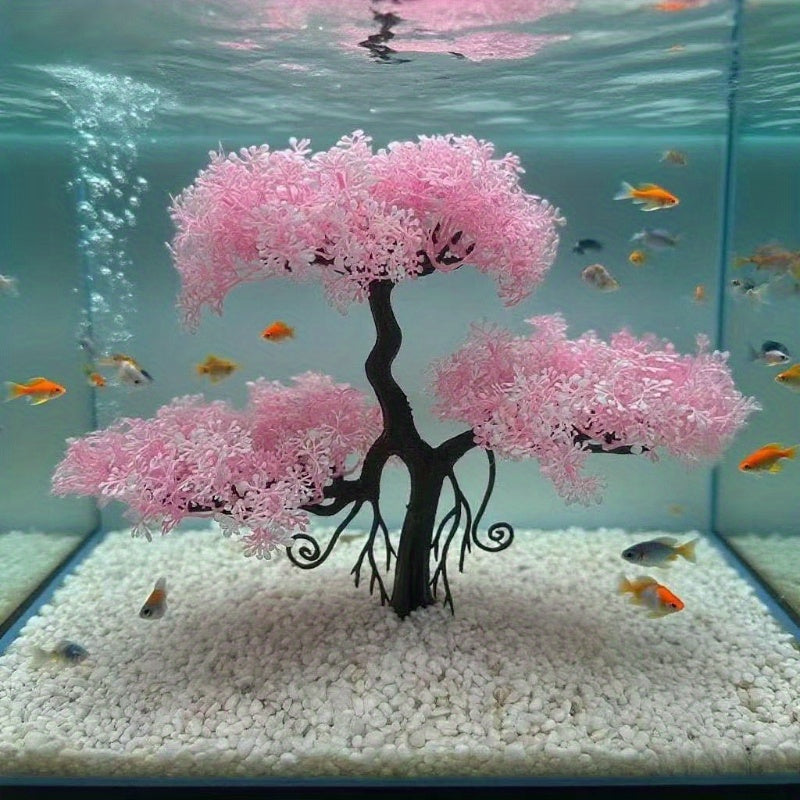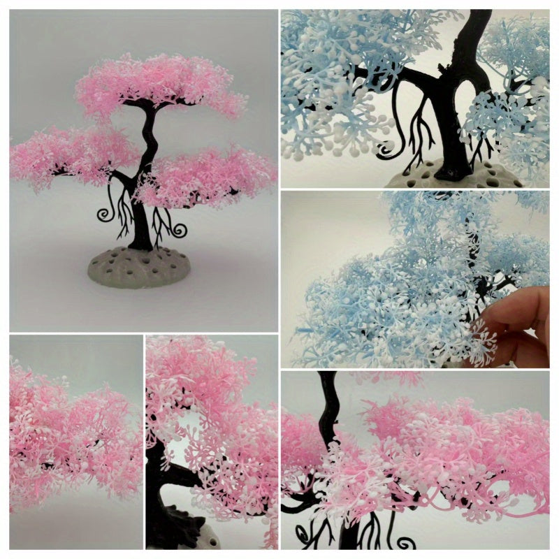 1pc Aquarium Fake Cherry Blossom Tree, Lucky Tree Decoration, White and Blue Snow Covered Branches, Suitable for Freshwater and Saltwater Fish Tank Plastic Landscape Display with Textured Leaves Underwater Decoration