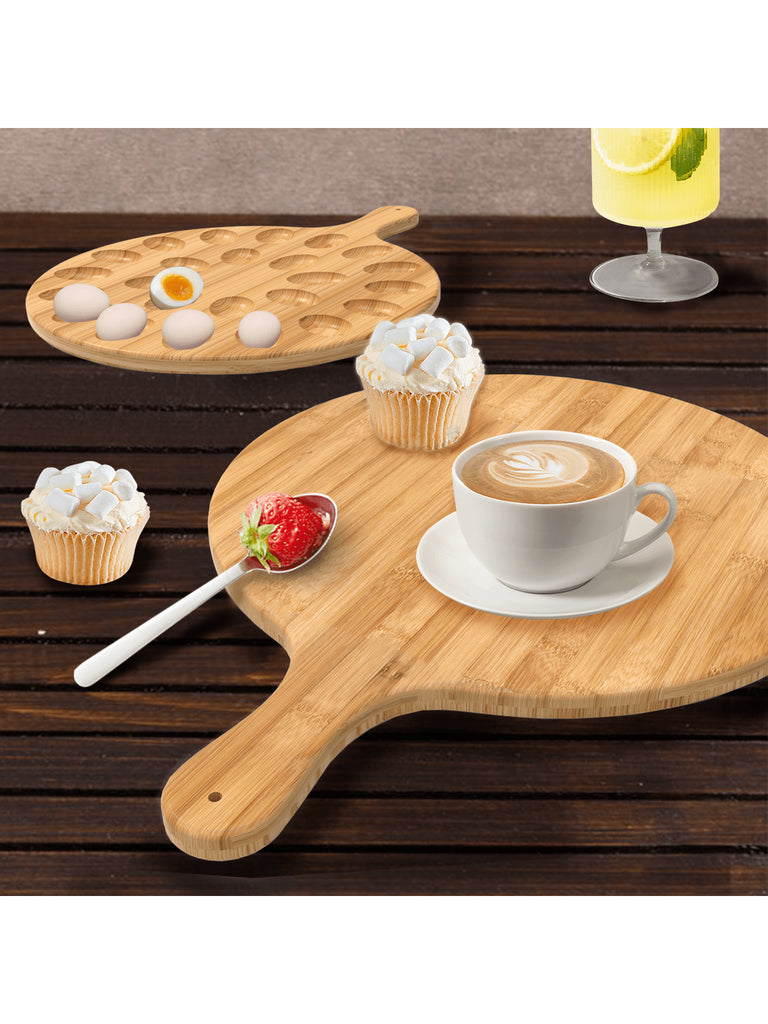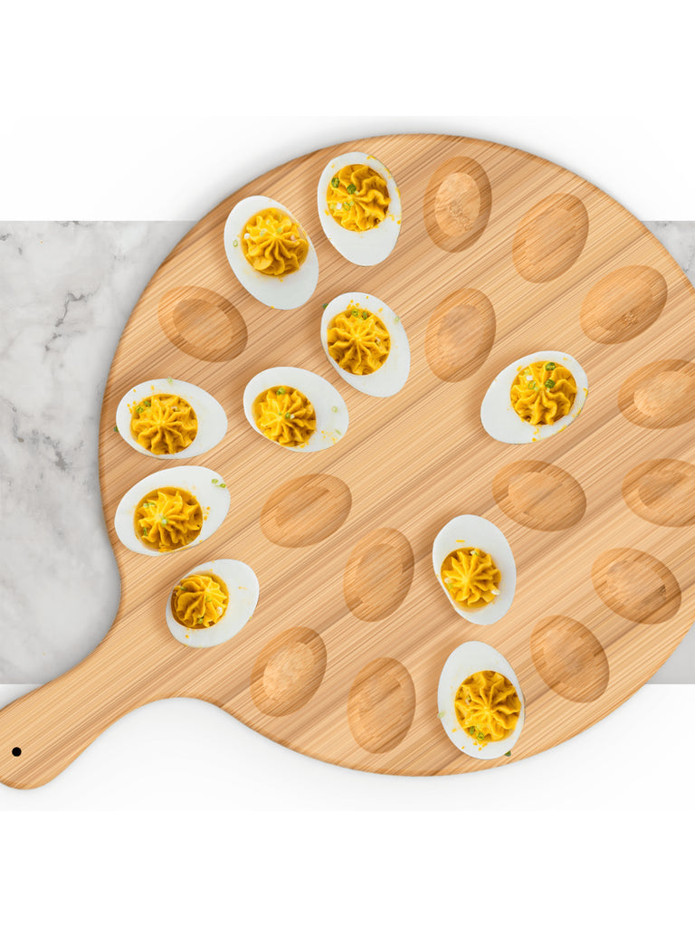 1pc Bamboo Devil's Egg Tray, Cooked Food Board, Egg Tray, 24 Hole Round Cooked Food Board, Cheese Board, Cutting Board, Devil's Egg Container Rack, Kitchen Supplies, Tableware