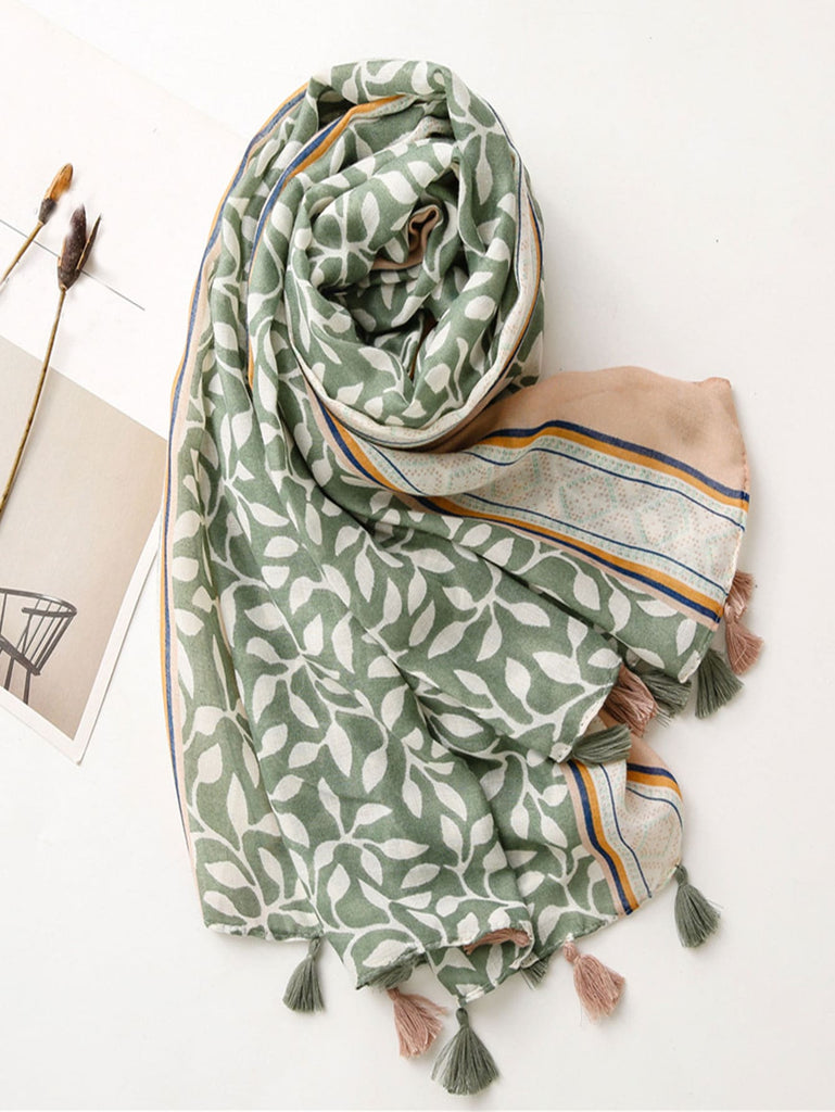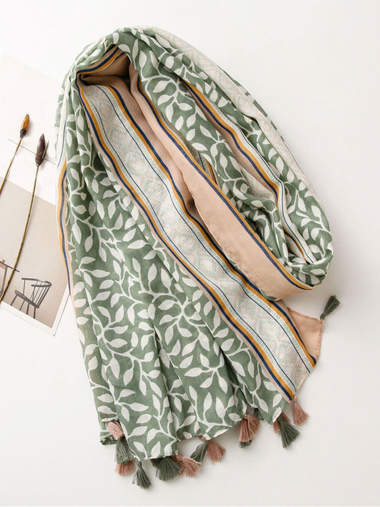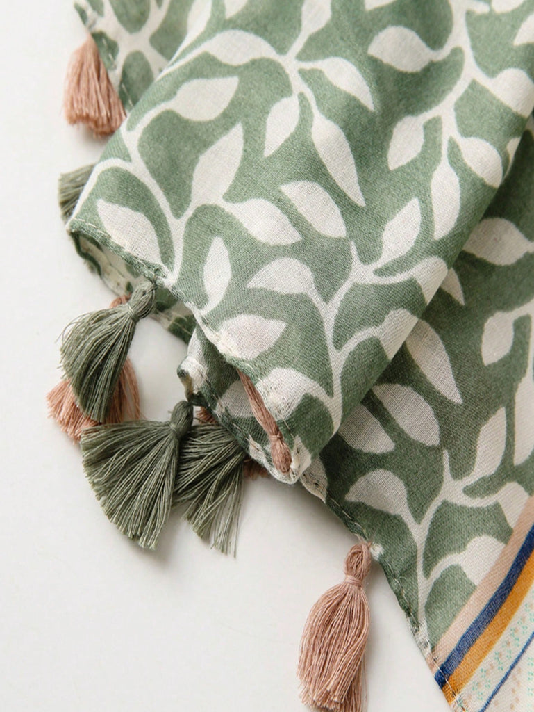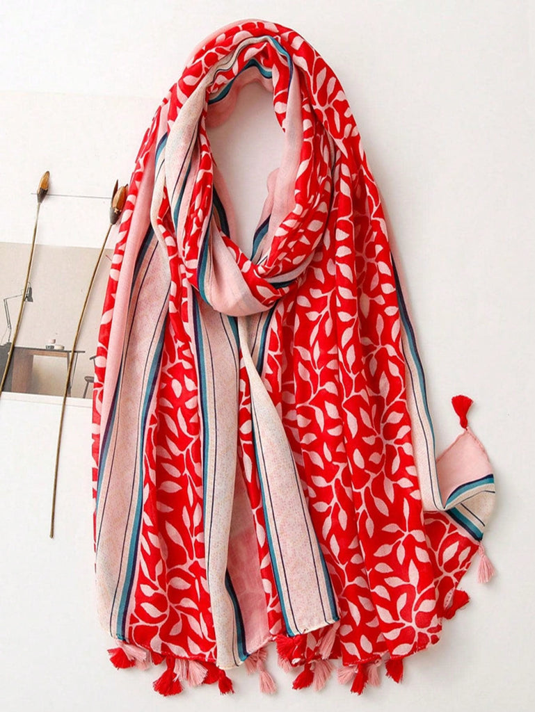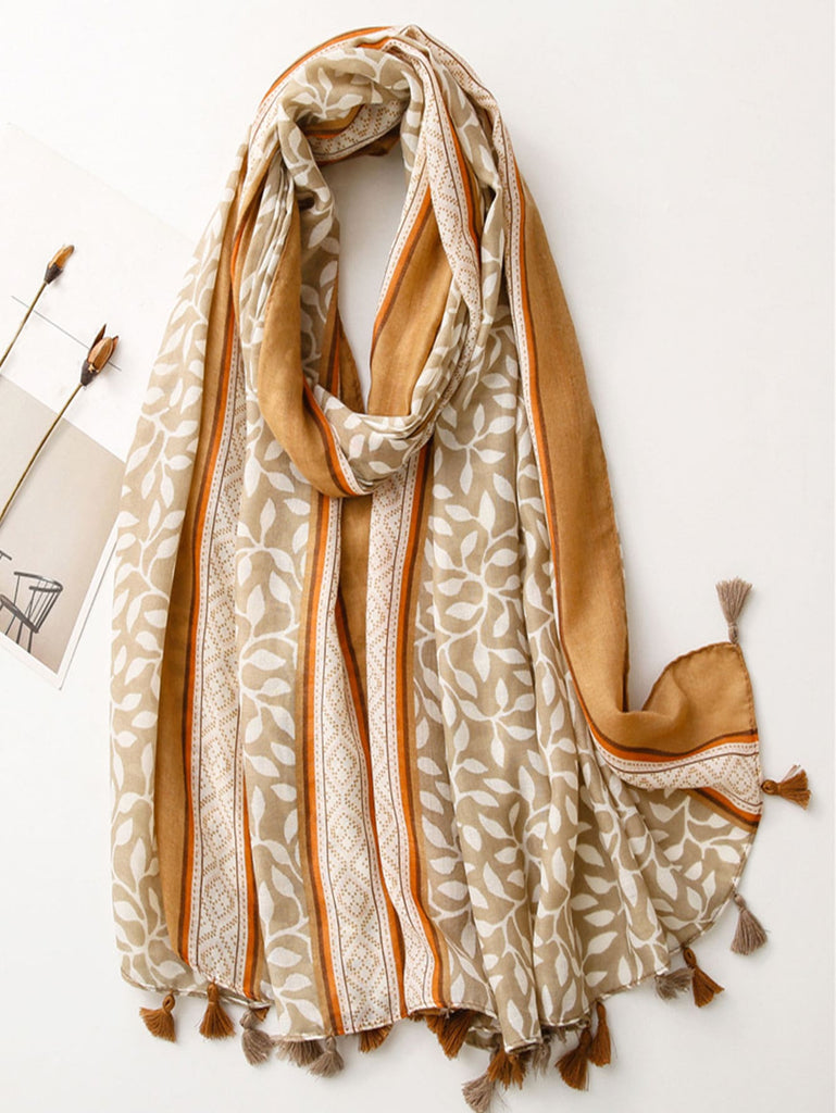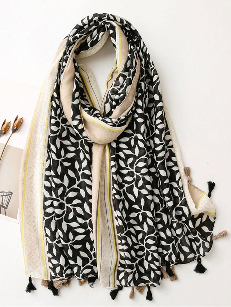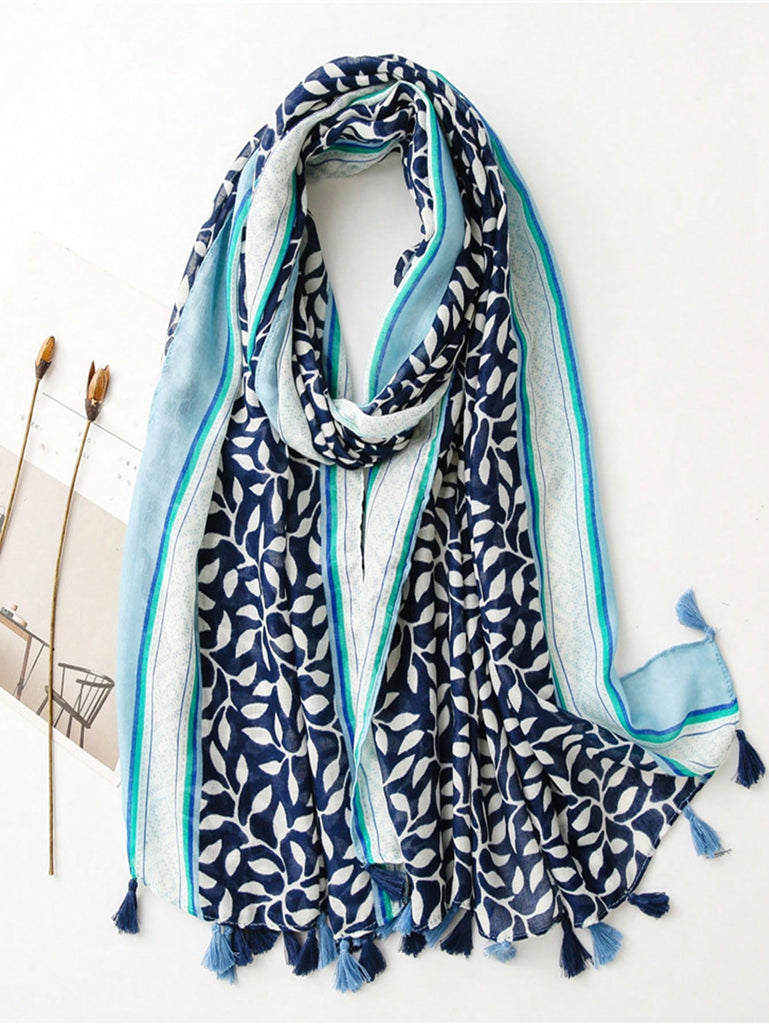 1pc Beach Accessories Simple Printed Scarf, Lightweight Breathable Tassels Shawl, Elegant & Fashionable Women's Silk Scarf For Spring & Summer. Bright Extra-Long Scarf Suitable For Outdoor & Beach, Can Be Worn As A Headscarf. Accessories Women