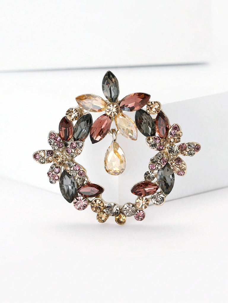 1pc Crystal Flower Design Fashion Brooch Pin Suitable For Women Everyday Wear