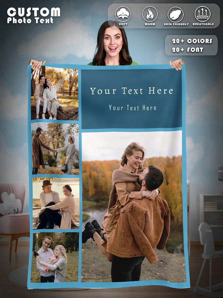 1pc Customized Photo Blanket , Personalized Photo Blanket