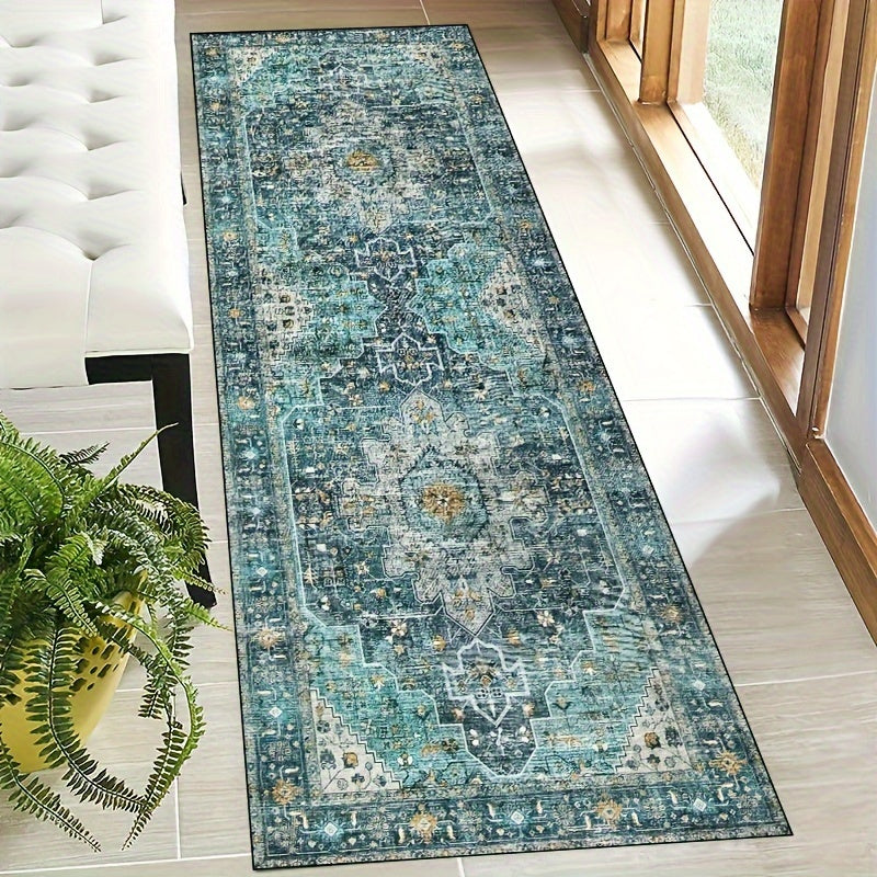 Embedded Diamond Grid Mandala' Non-slip Runner Mat