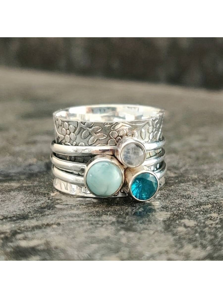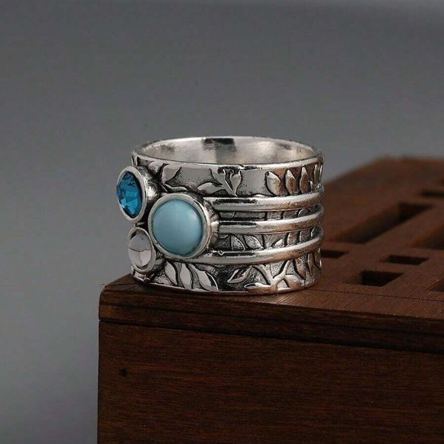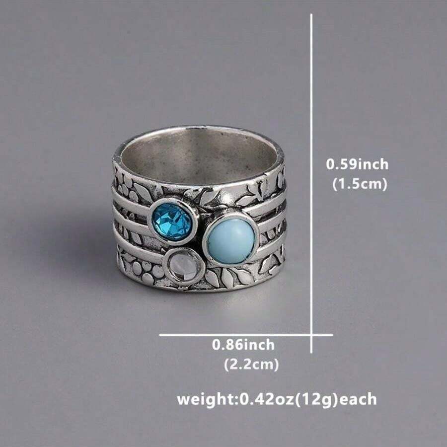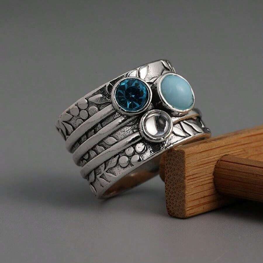 1pc Fashionable Bohemian Style Silver Plated Gemstone Inlaid Ring, Ideal For Women As A Commemorative Gift