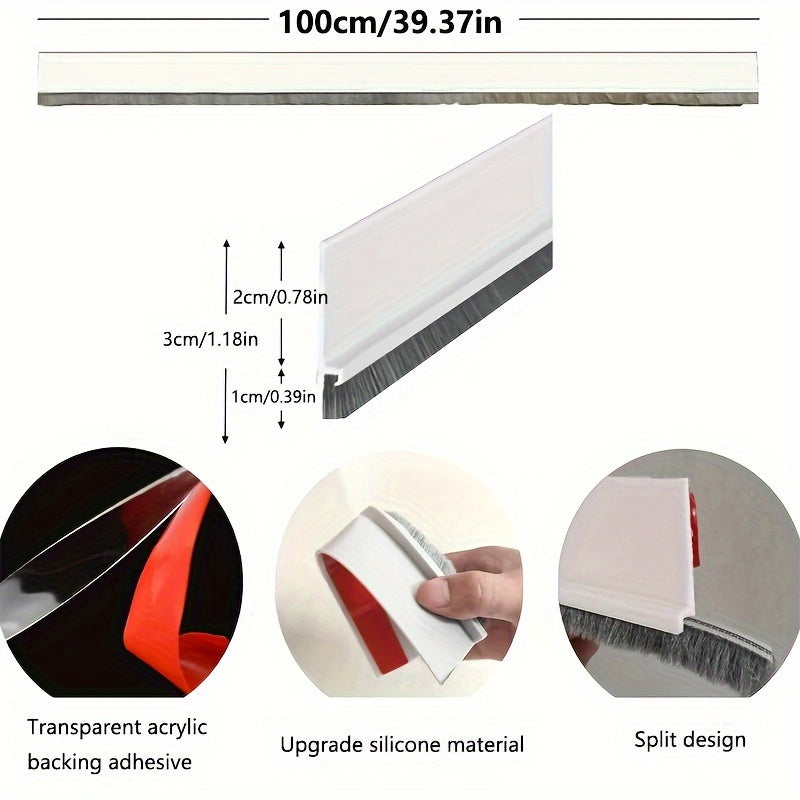 1pc Flexible Silicone Door Bottom Seal Strip - 3cm Wide, Available in Black, White, Gray, Brown - Windproof, Insect-Proof & Soundproofing for Home & Bedroom Doors