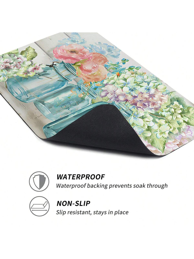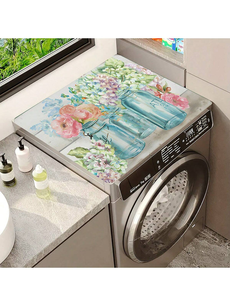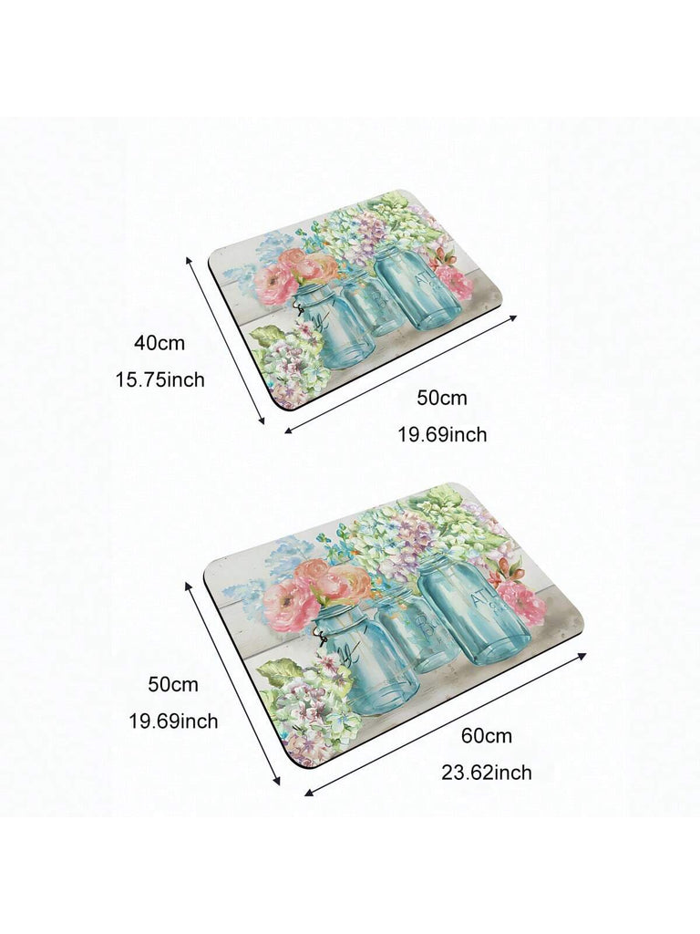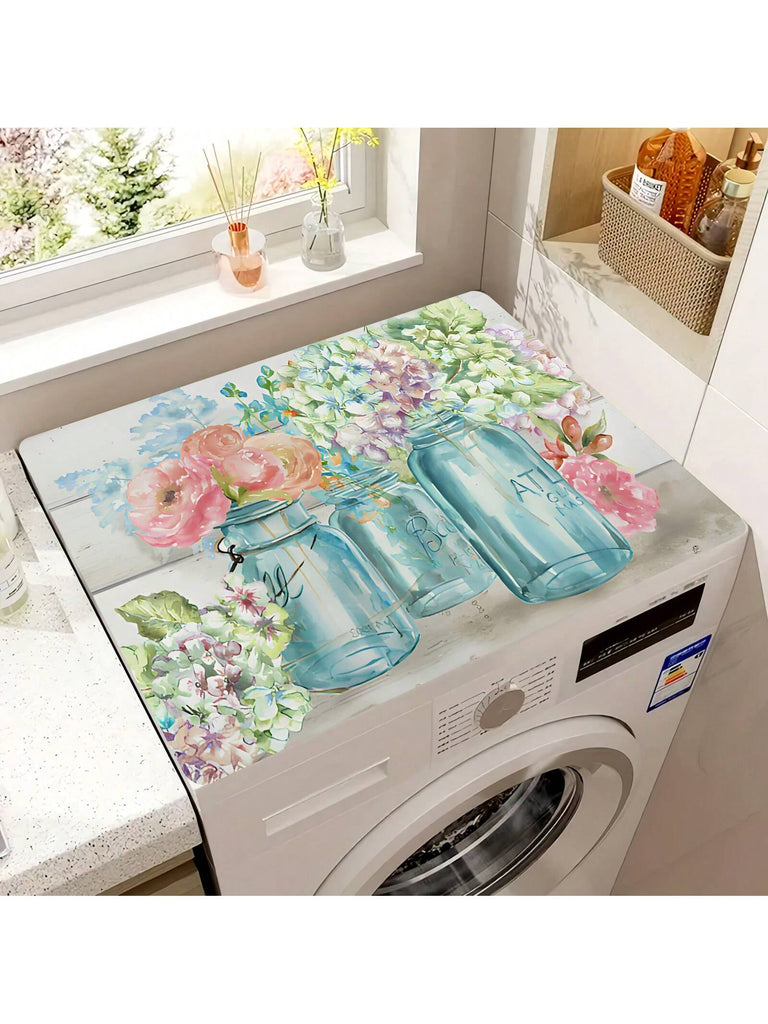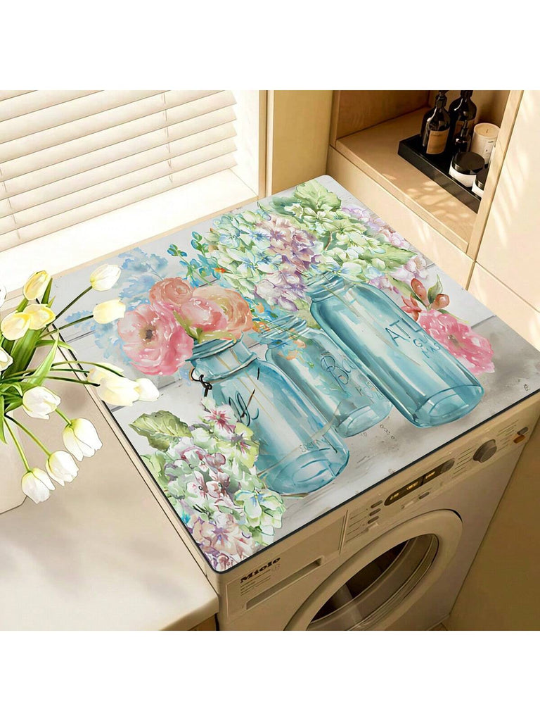 1pc Floral Painted Dishwashing Mat, Vase, Washing Machine Dust Cover, Concentrated Coffee Machine Absorbent Mat, Sink Drainage Mat, Soft Faucet Absorbent Mat, Bathroom Cup Mat, Kitchen Accessories, Bathroom Accessories