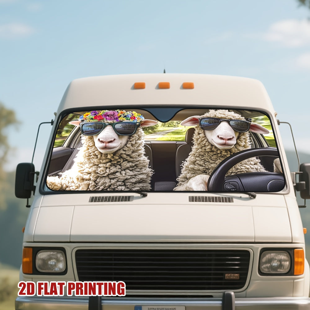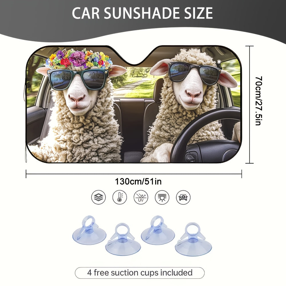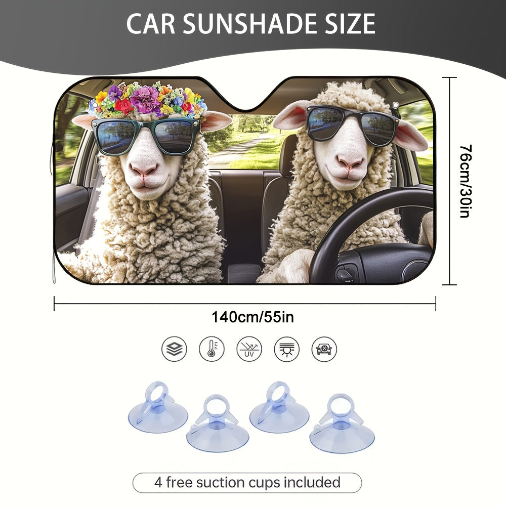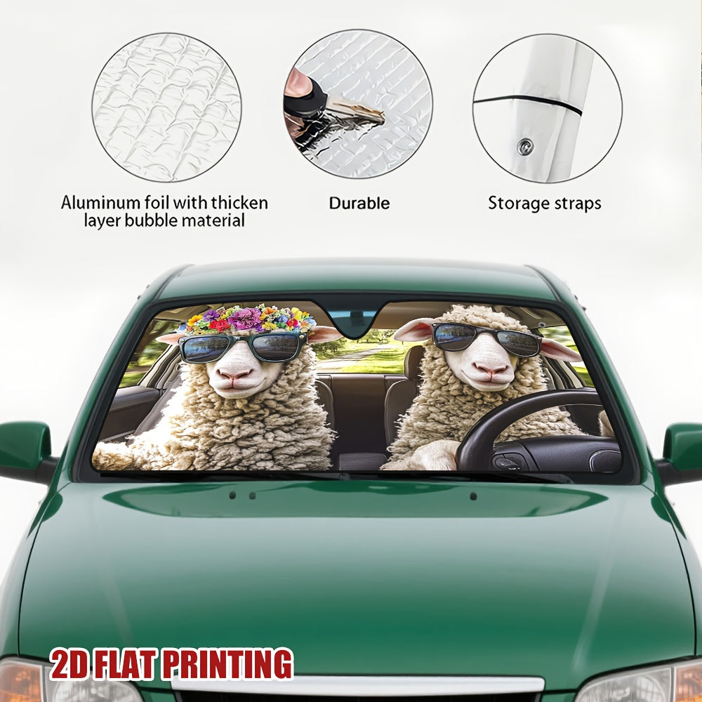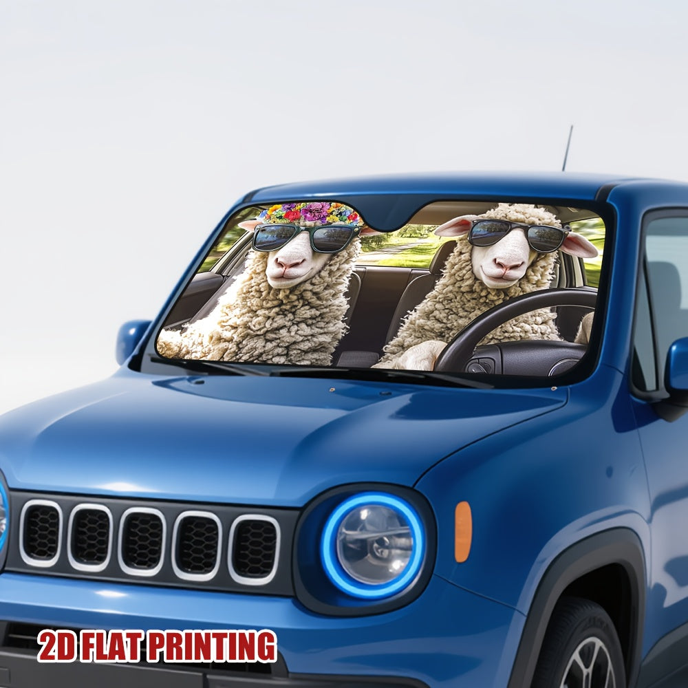1pc Funny Sheep Car Sun Visor with Fashion Glasses-Wearing Sheep Design - Fit for Cars, Blocks Glare & Reduces Eye Strain, Cute Sheep Face & Fluffy Fleece Texture, Ideal for Long Drives, Summer Trips, Road Trips - Car Interior Accessory (Compatible with
