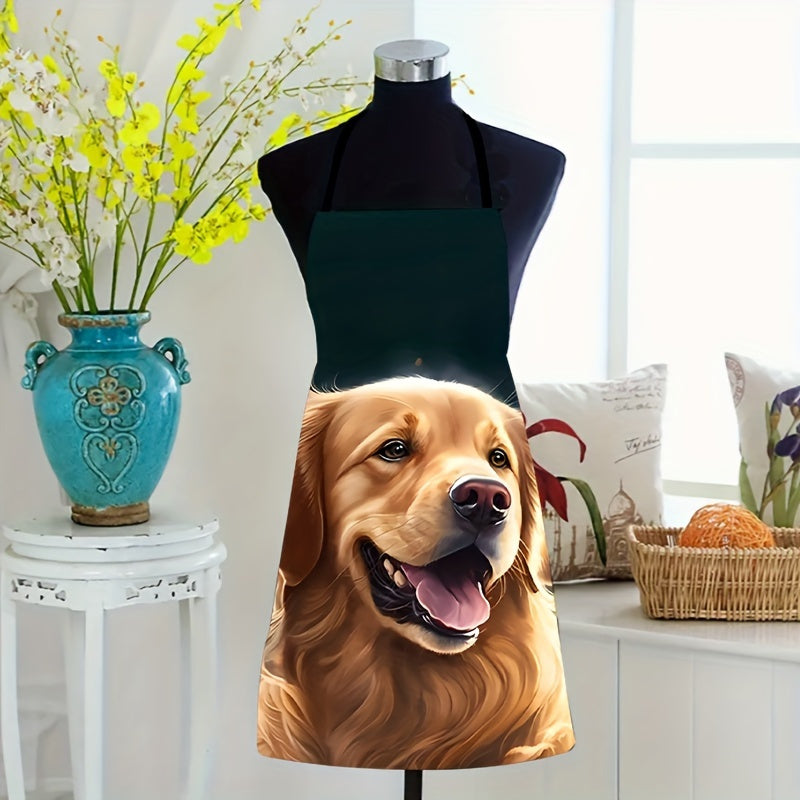 1pc Golden Retriever Print Sleeveless Polyester Apron - Ideal for Spring & Summer Baking & Cooking, Kitchen Apron|Playful Dog Design|Durable Apron