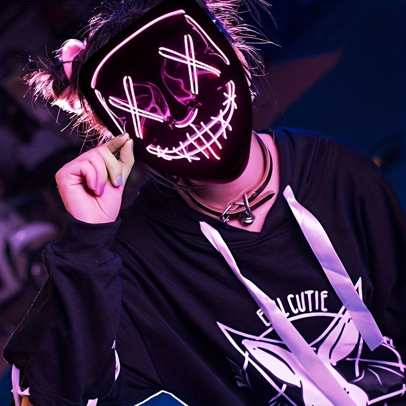 1pc Halloween Mask LED Glow Mask, Scary Mask For Halloween Holiday Party, Ideal Choice For Gifts