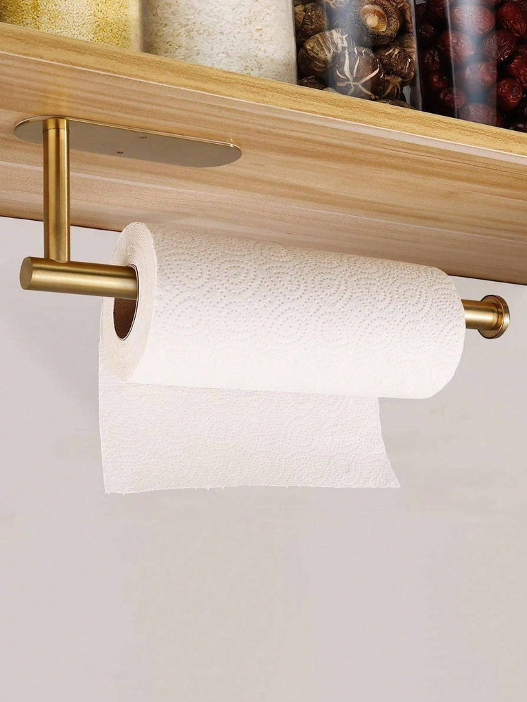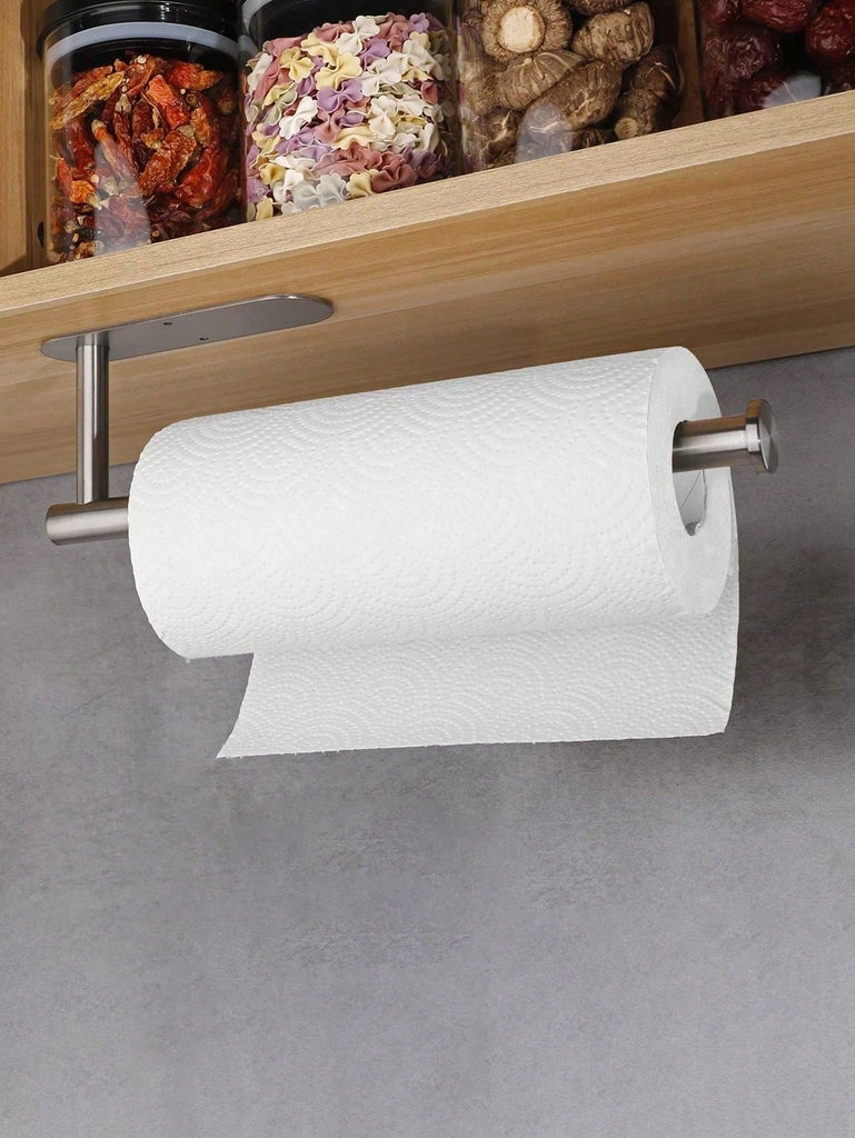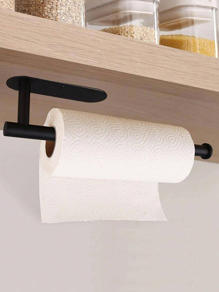 1pc Hanging Paper Towel Holder, Kitchen Cabinet Cupboard Under Shelf Storage Paper Towel Roll Holder Dispenser, Free Punching Wrought Iron Napkins Plastic Wrap Rag Cling Film Storage Rack, Home Kitchen Supplieshome Decor,School Supplies