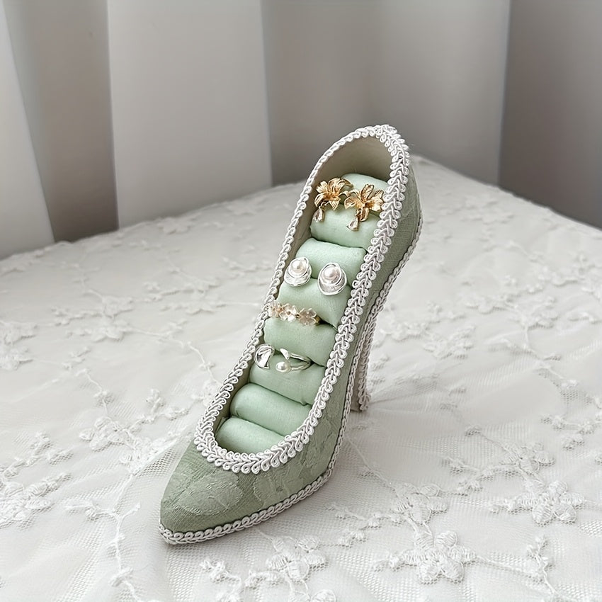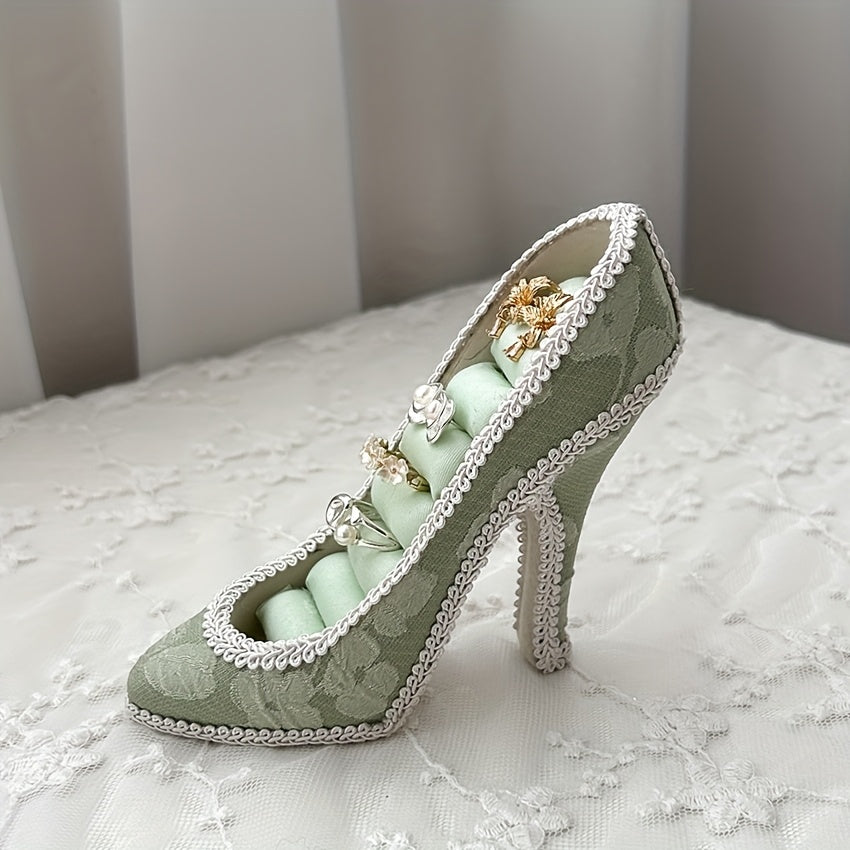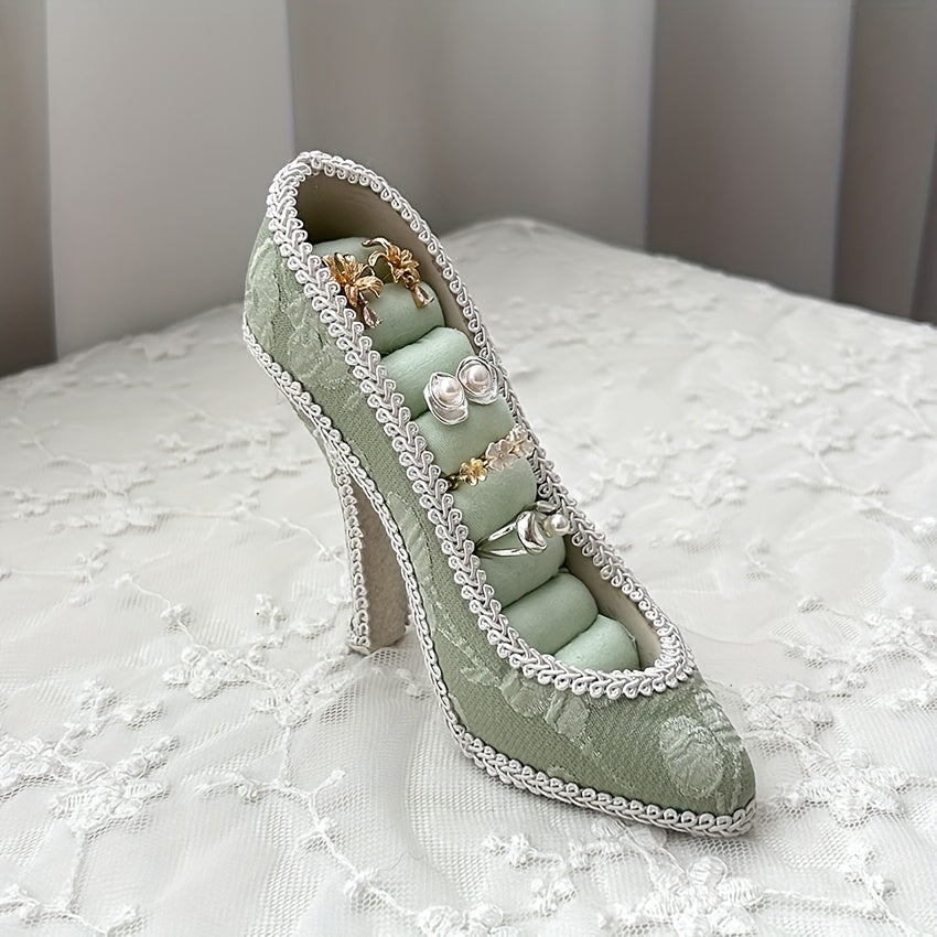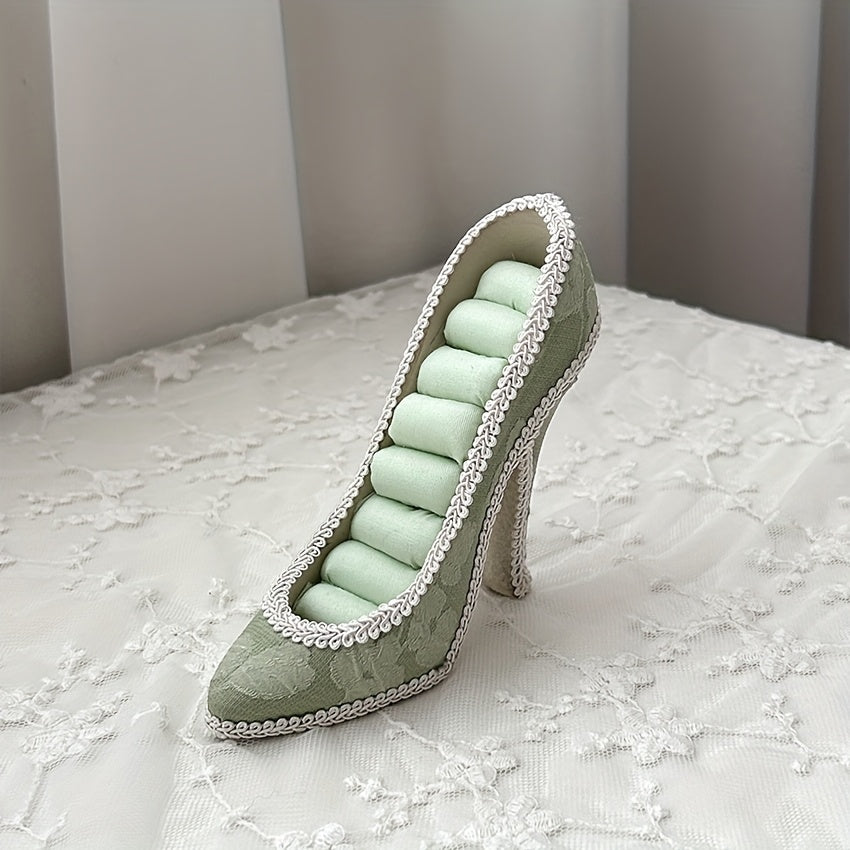1pc Jewelry display stand Embroidery style printed green High Heels Ring Earrings Storage jewelry display props for Women's gifts Mother's Day gifts Green High Heels