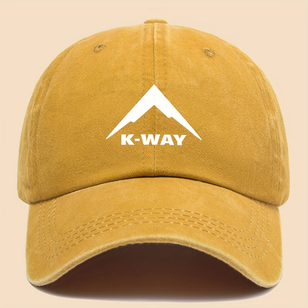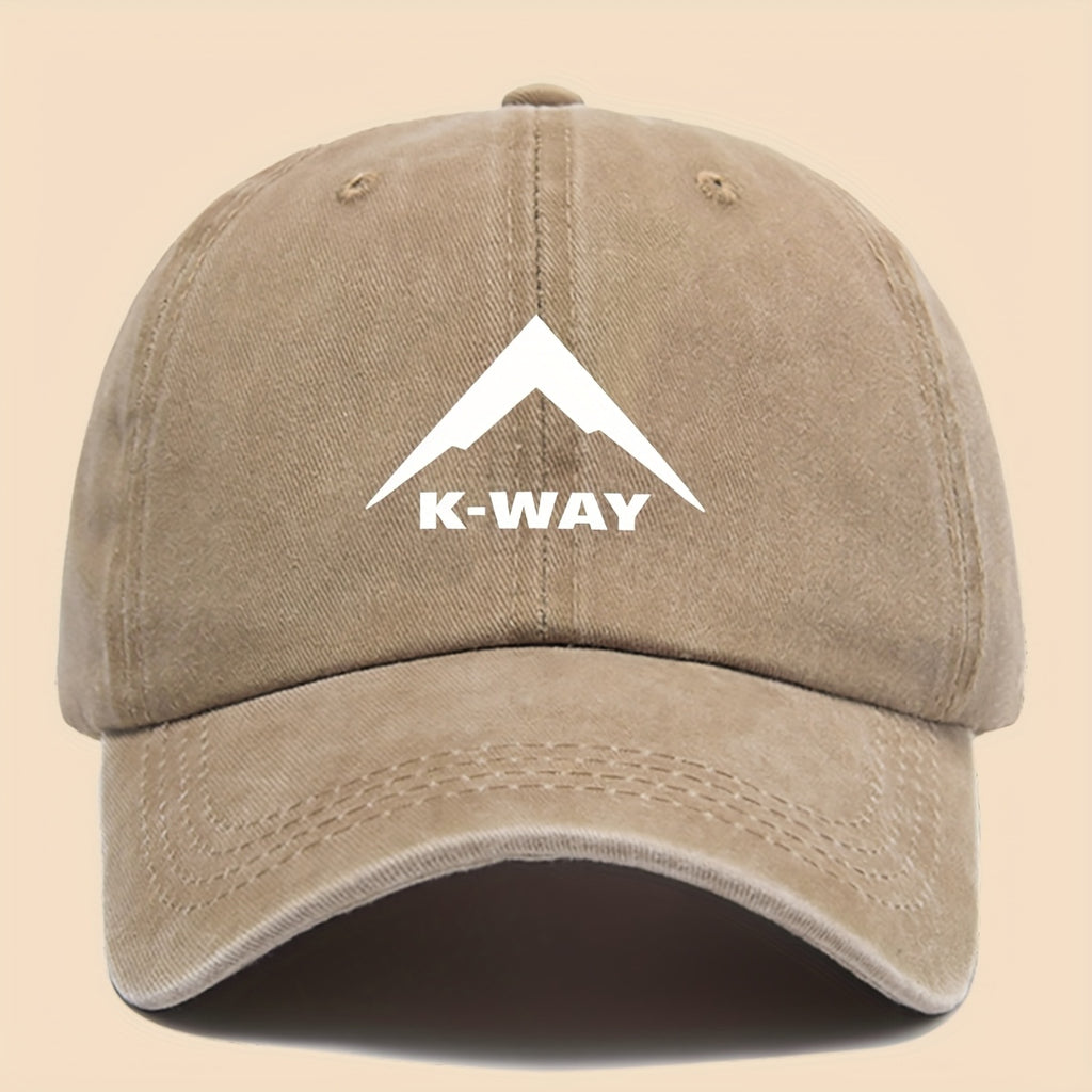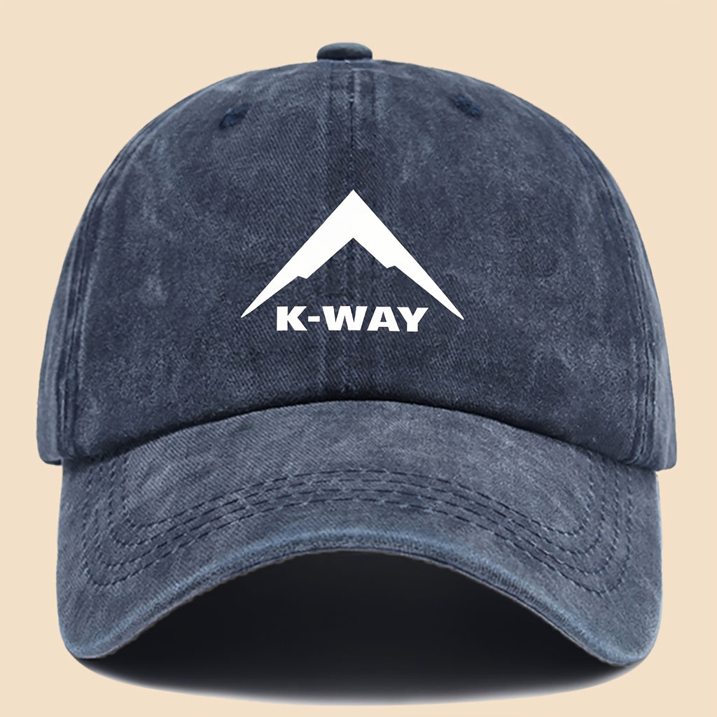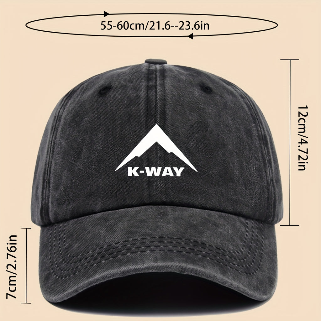 1pc "K-WAY Outdoor Fashionable Unisex Baseball Cap - Breathable Adjustable Washed Curved Brim Hat, Retro Dad Hat with Size Adjustment, Stylish Print | Ideal for Summer Hiking, Fishing, Camping All Seasons | Perfect Gift for Father's Day, Mother's Day, Ch