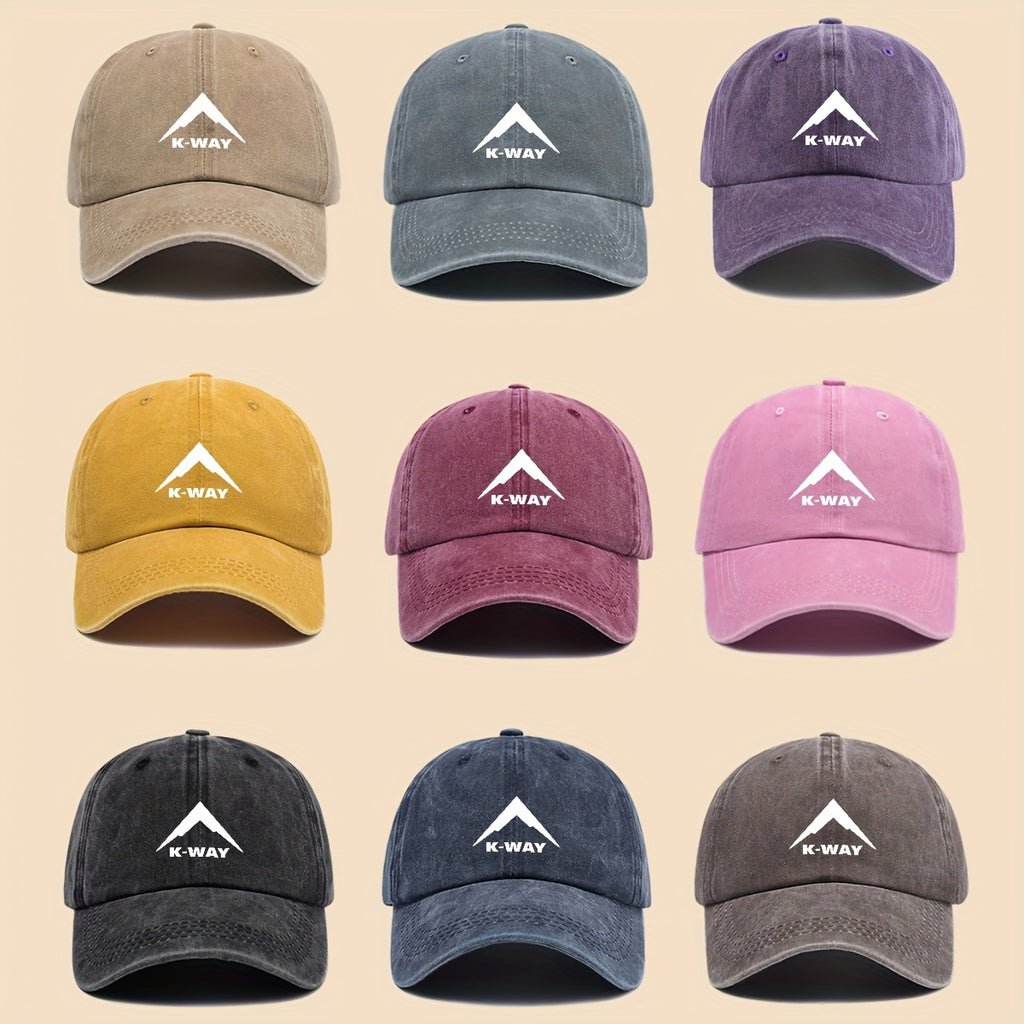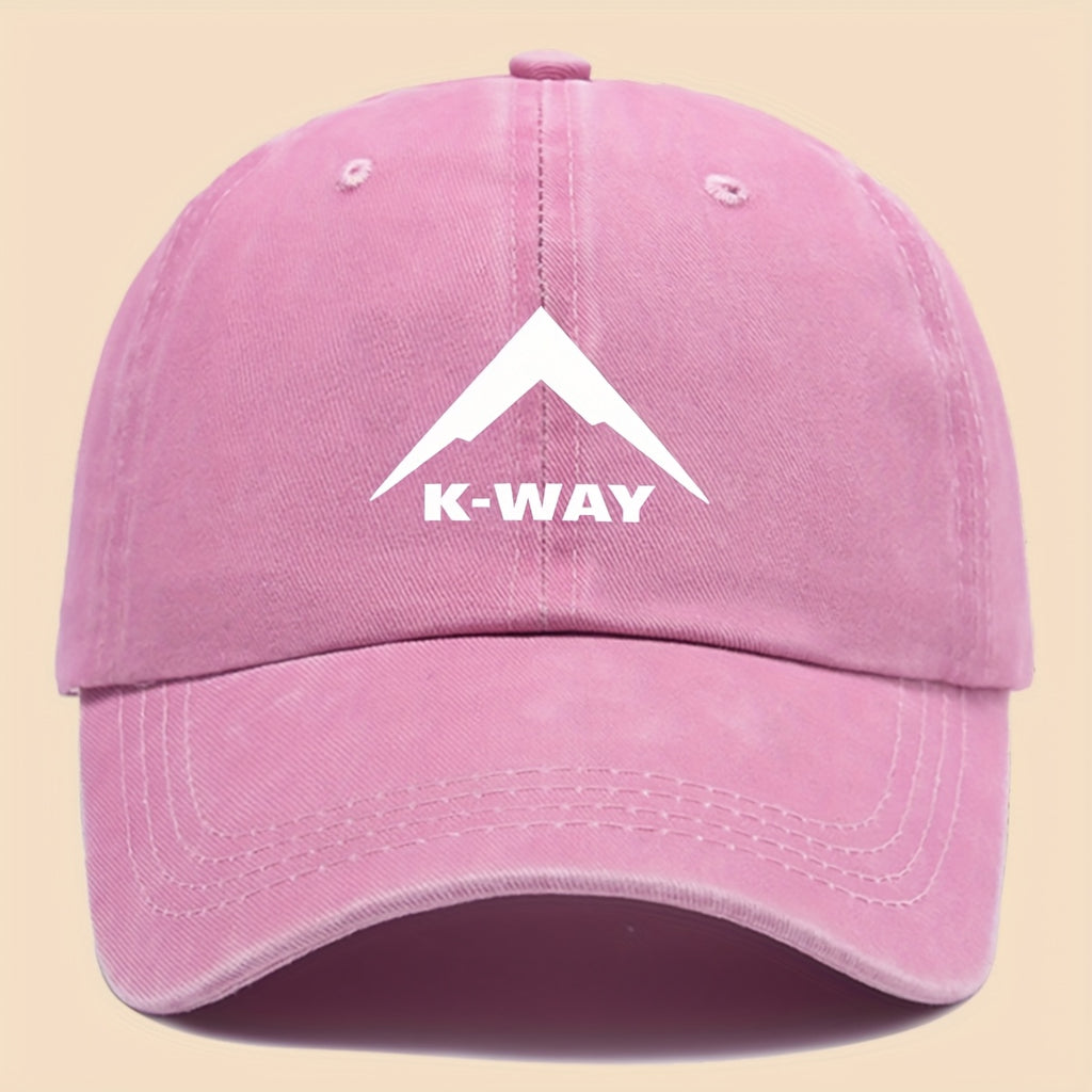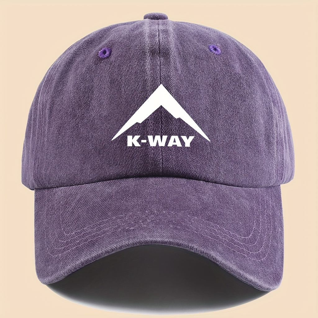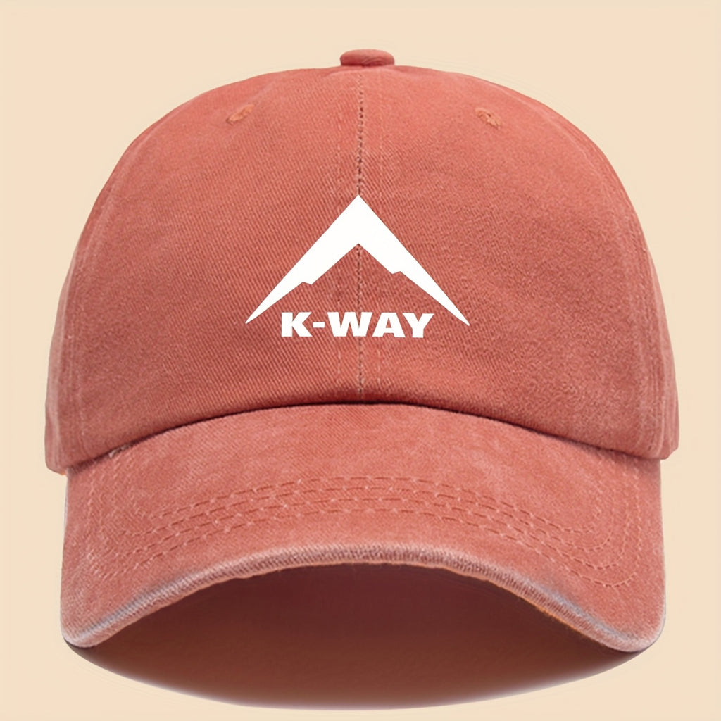 1pc "K-WAY Outdoor Fashionable Unisex Baseball Cap - Breathable Adjustable Washed Curved Brim Hat, Retro Dad Hat with Size Adjustment, Stylish Print | Ideal for Summer Hiking, Fishing, Camping All Seasons | Perfect Gift for Father's Day, Mother's Day, Ch