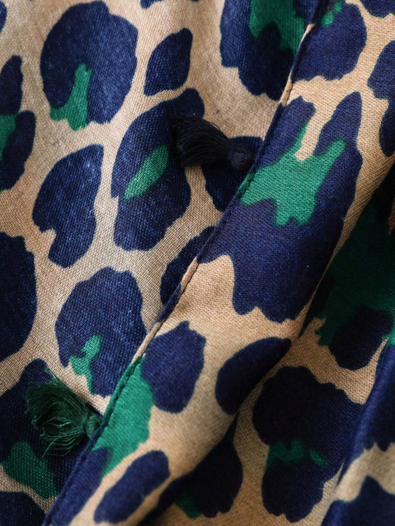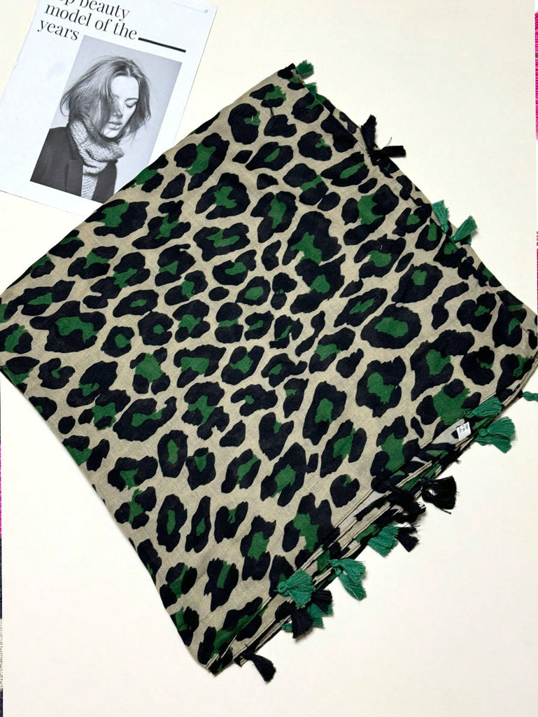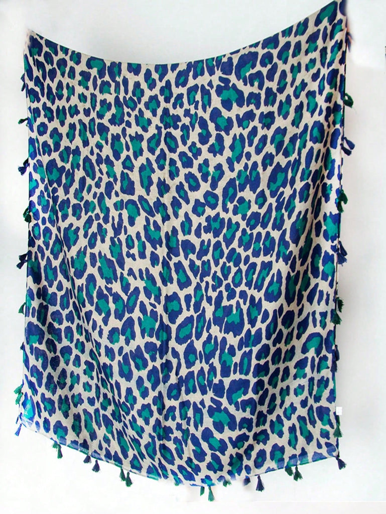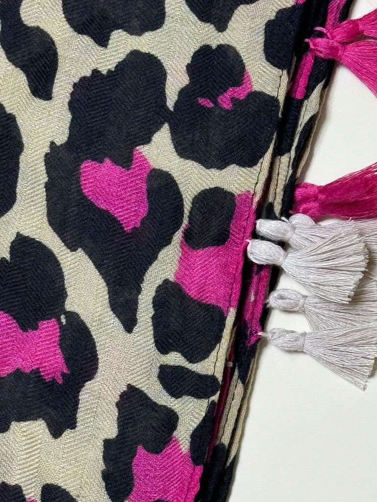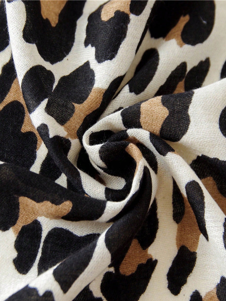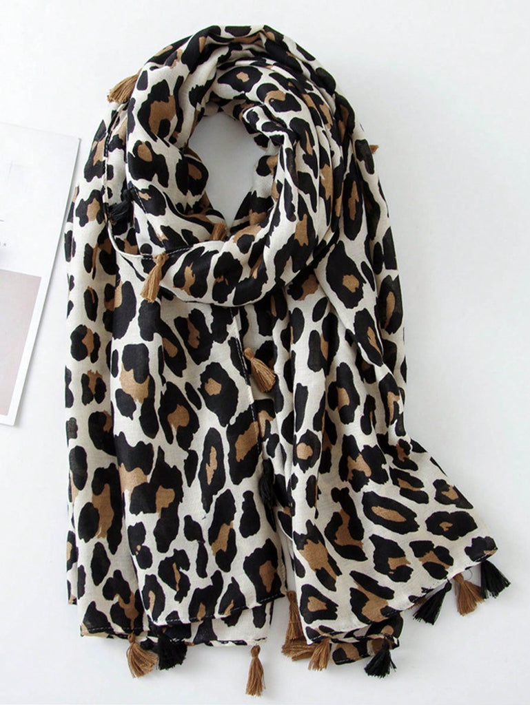 1pc Leopard Print Scarf, Fashion Women Silk Scarf With Tassels, Versatile Shawl For Sun Protection Accessories Women
