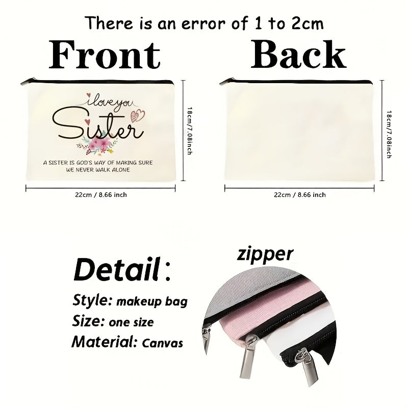 1pc Minimalist Canvas Pouch with "I Love You Sister" Quote