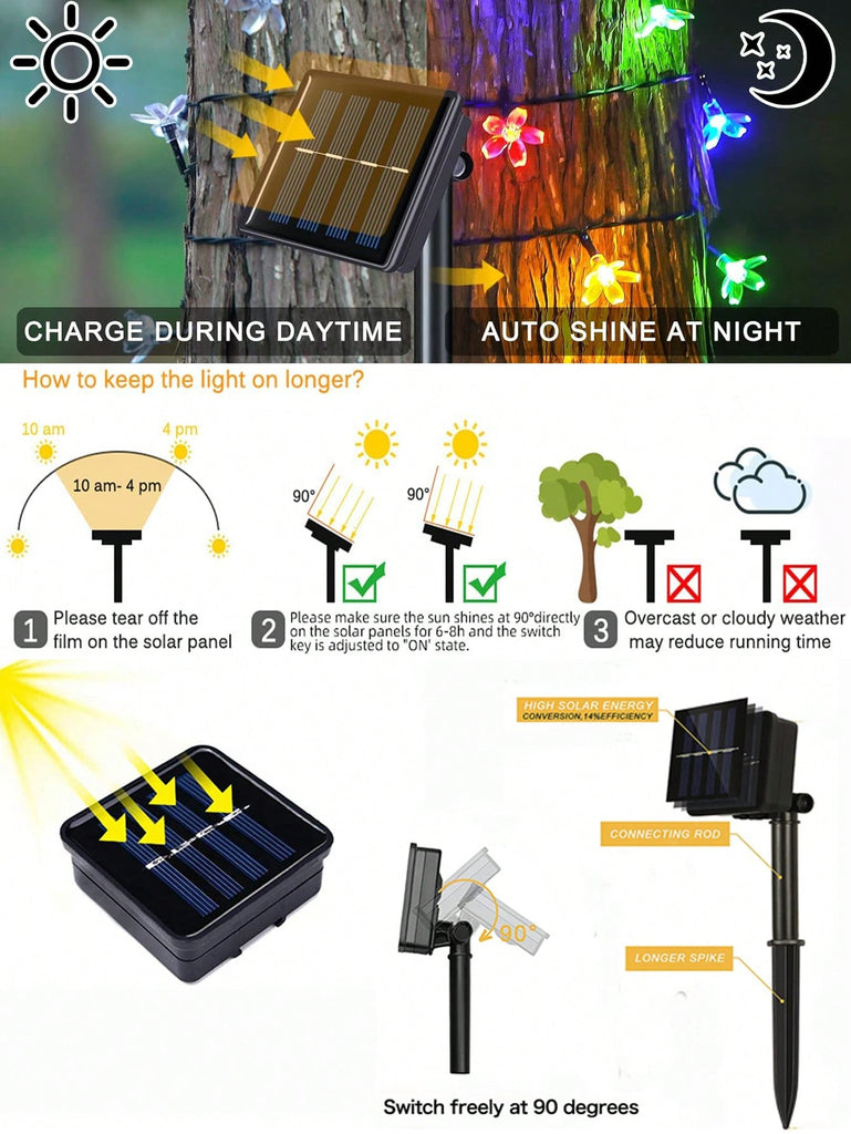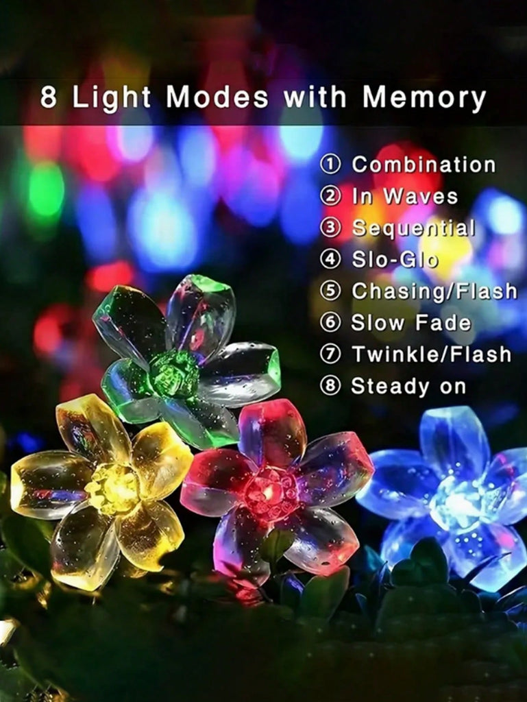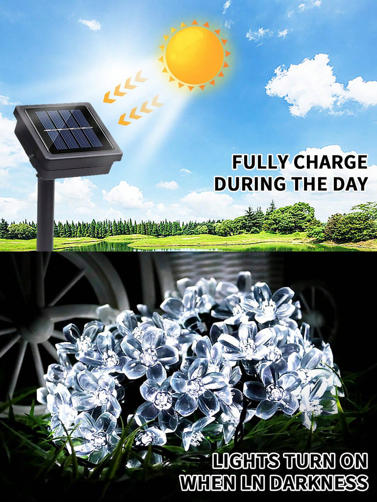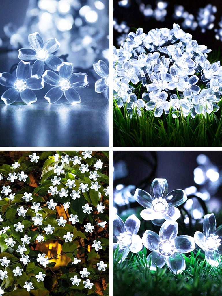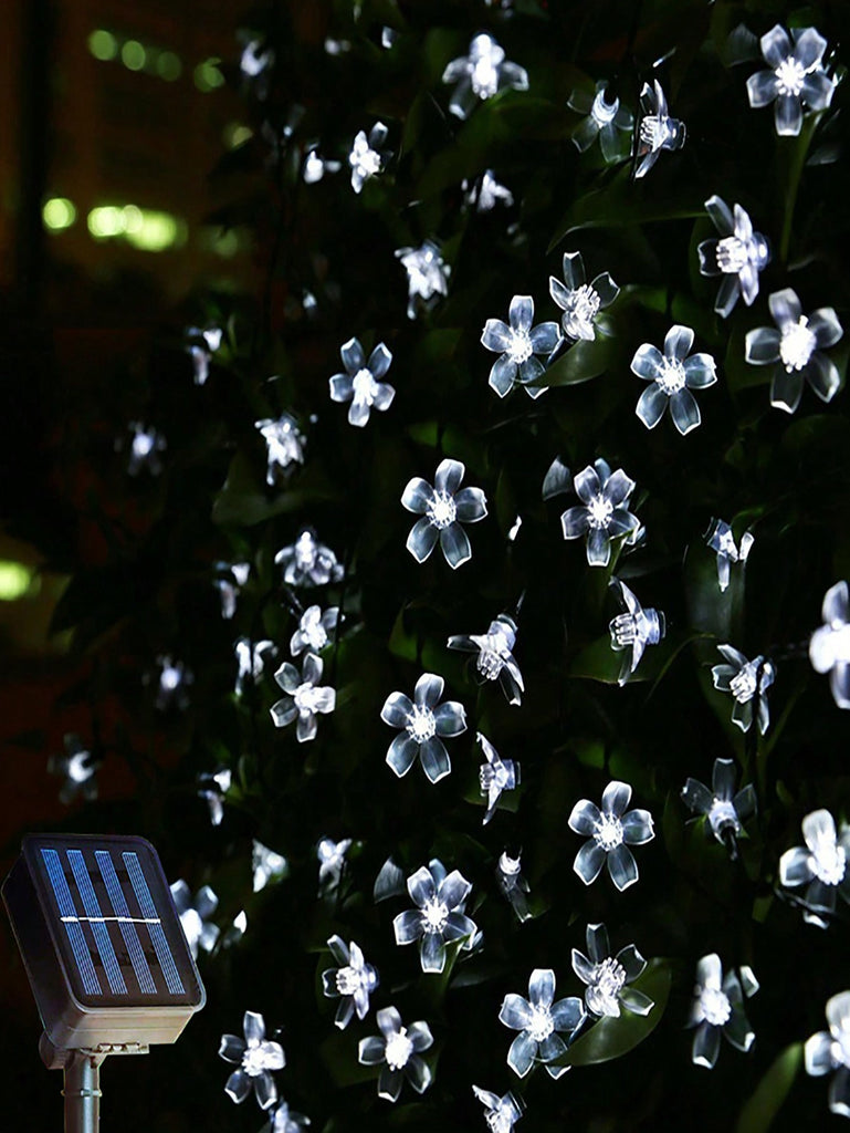 20/50/100 LED Solar Flower String Lights - Outdoor Light Strings For Garden Patio Yard Fence Christmas Tree Decoration With Fairy Light Ambience - Weather-Resistant, Energy-Efficient, And Easy To Install For Wedding, Party, Home, Lawn, And Holiday Decor