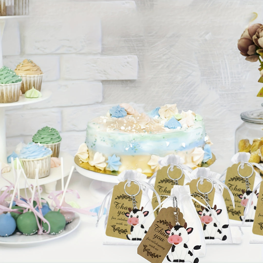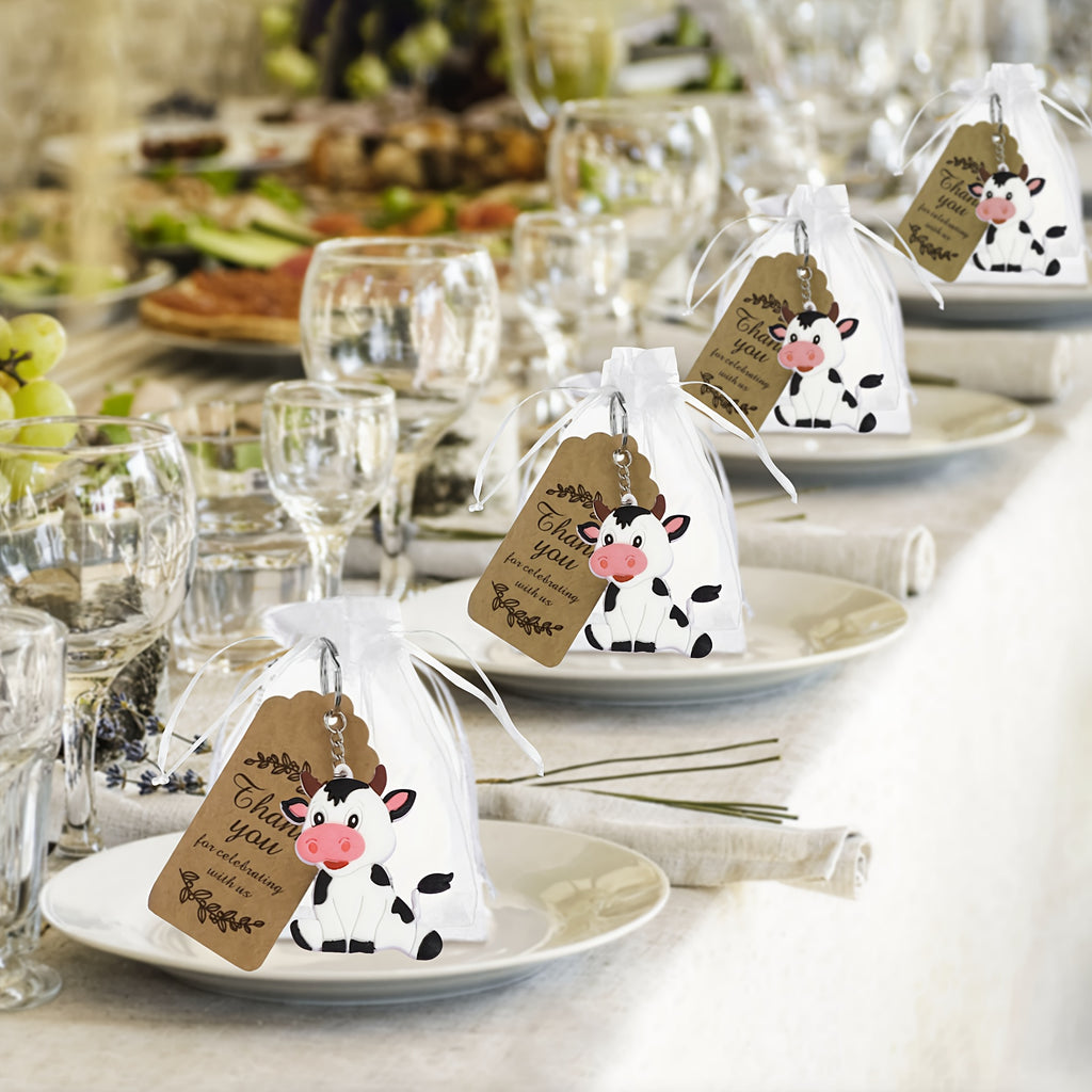 24pcs Cow-Themed Party Favor Set, Including Keychains, Thank You Cards, and White Mesh Bags - Perfect for Farm Animal Parties, Baptism Gifts, Birthday Favors, Christmas Souvenirs, Halloween, Weddings, Showers, Thanksgiving, New Year Celebrations, and Hol