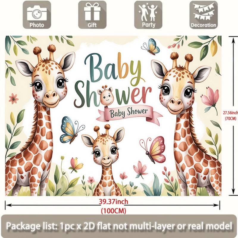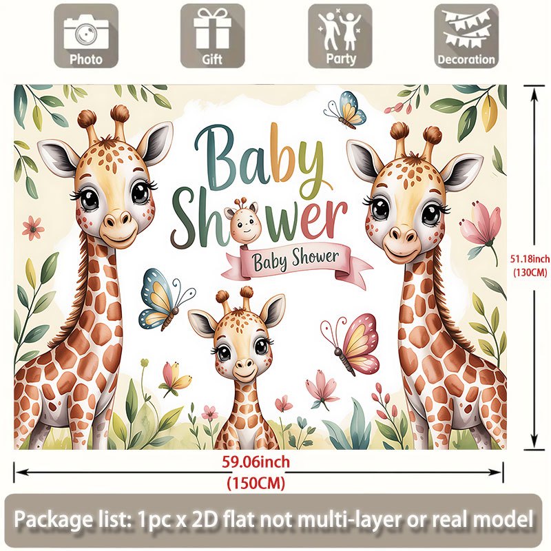 2D Flat - 2D Flat - 1pc a Flat 2D Banner for a Giraffe-Themed Baby Shower