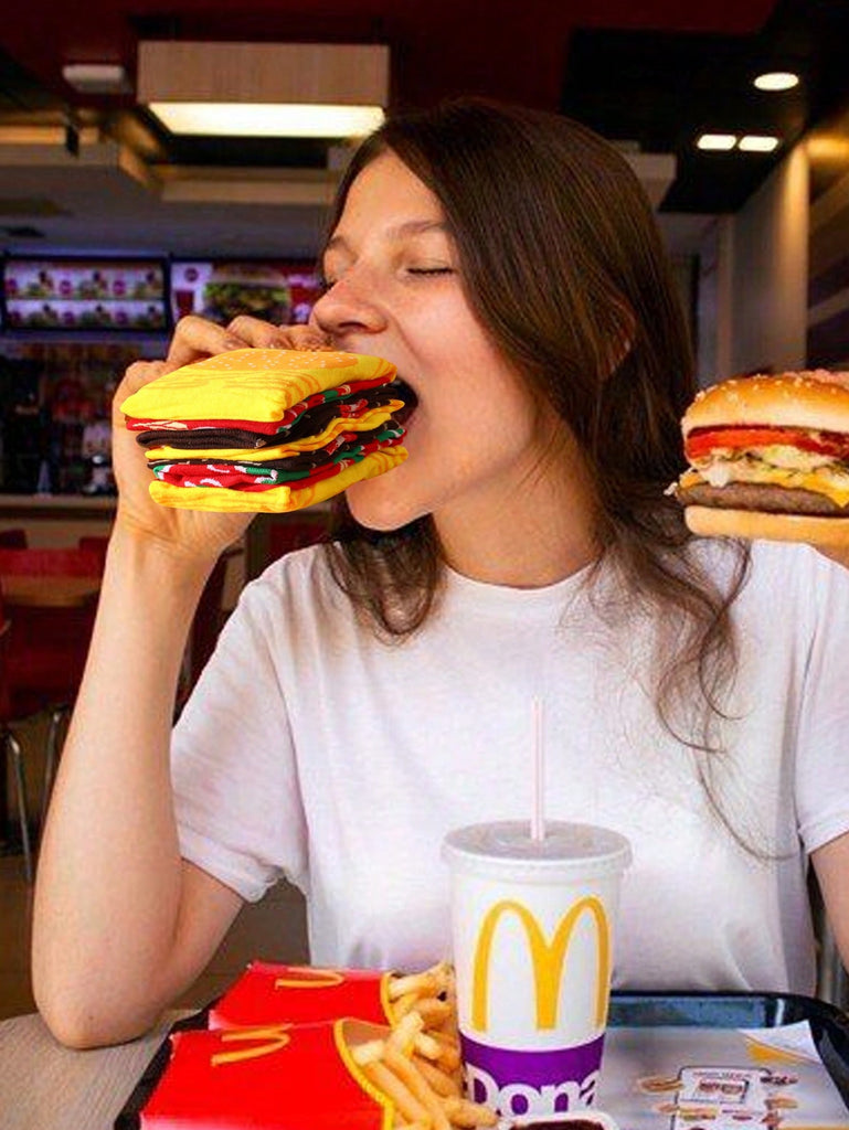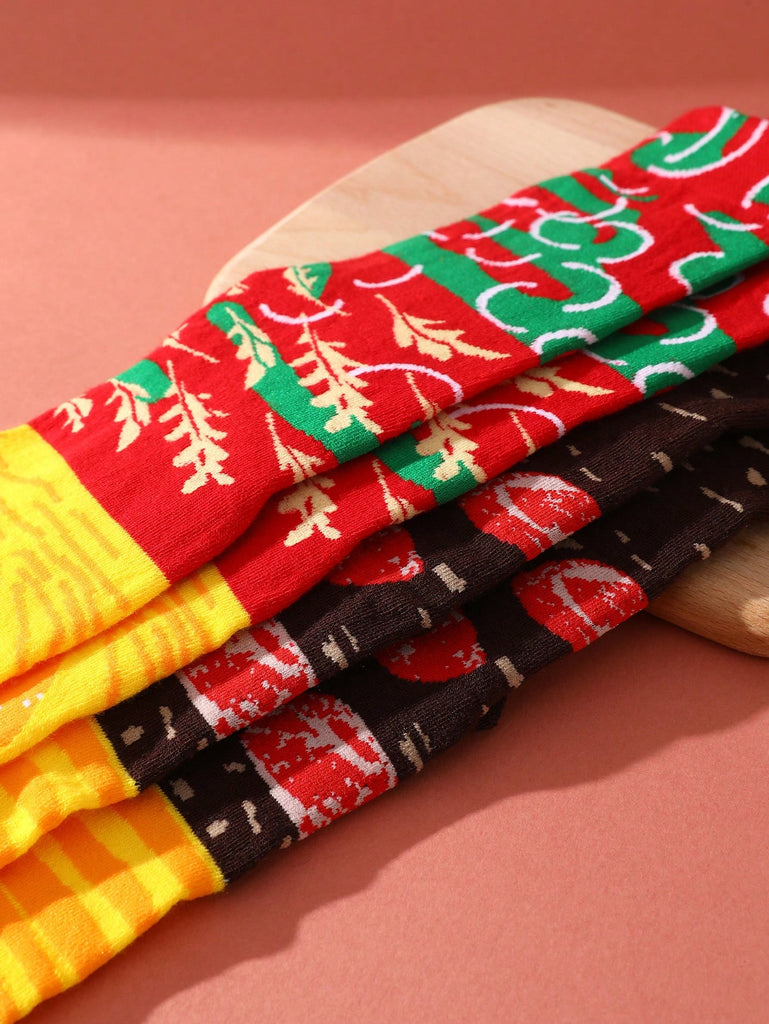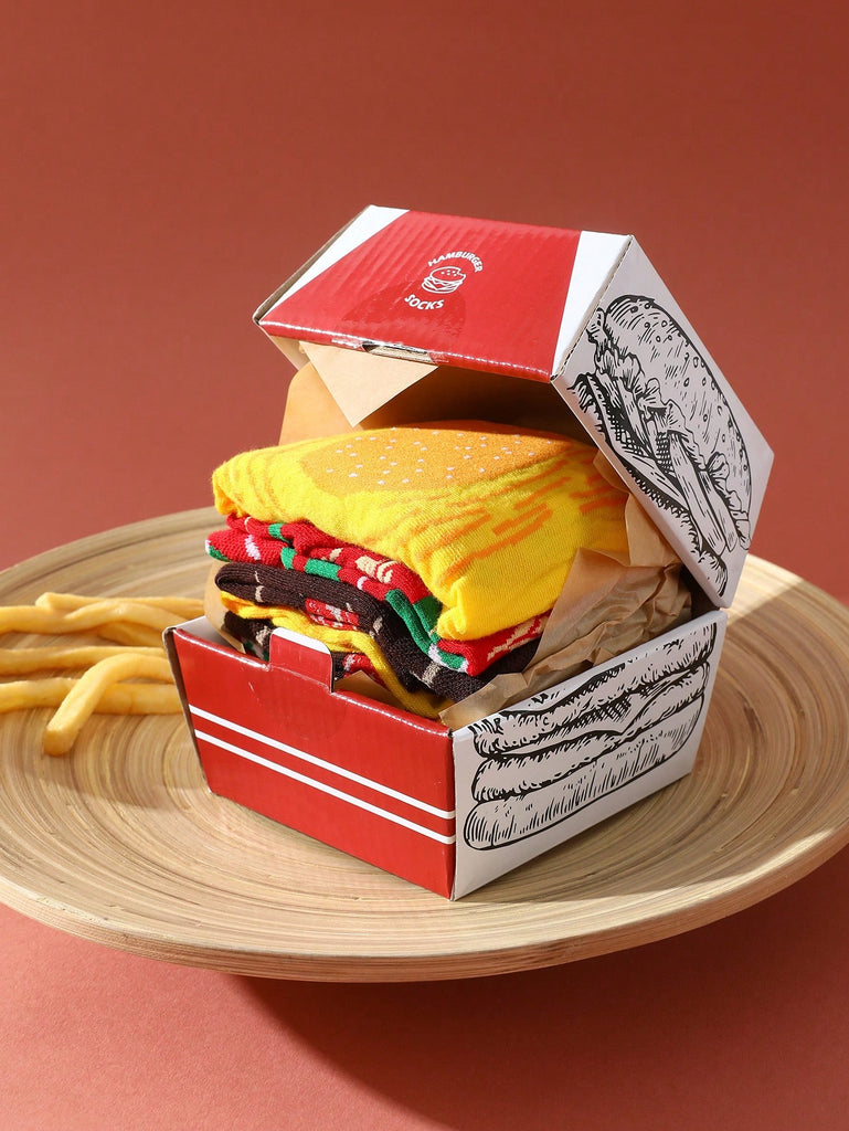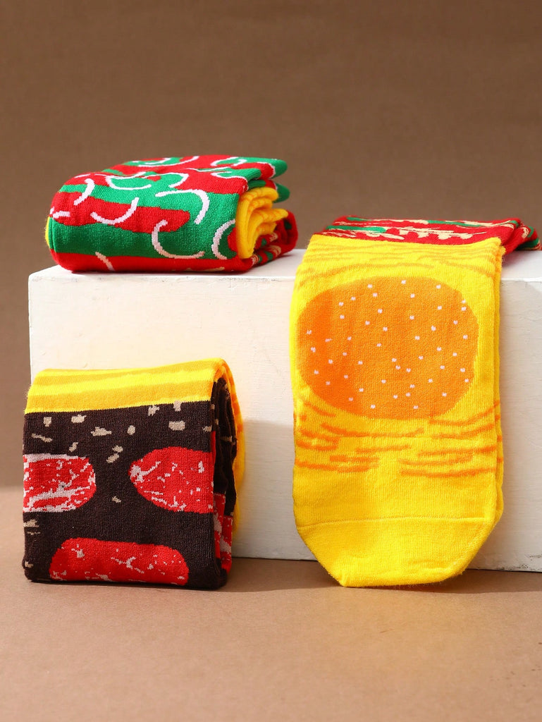 2pairs/Pack Unisex Crew Socks With Colorful Hamburger Pattern