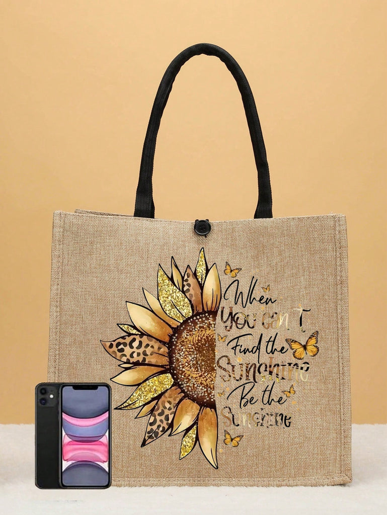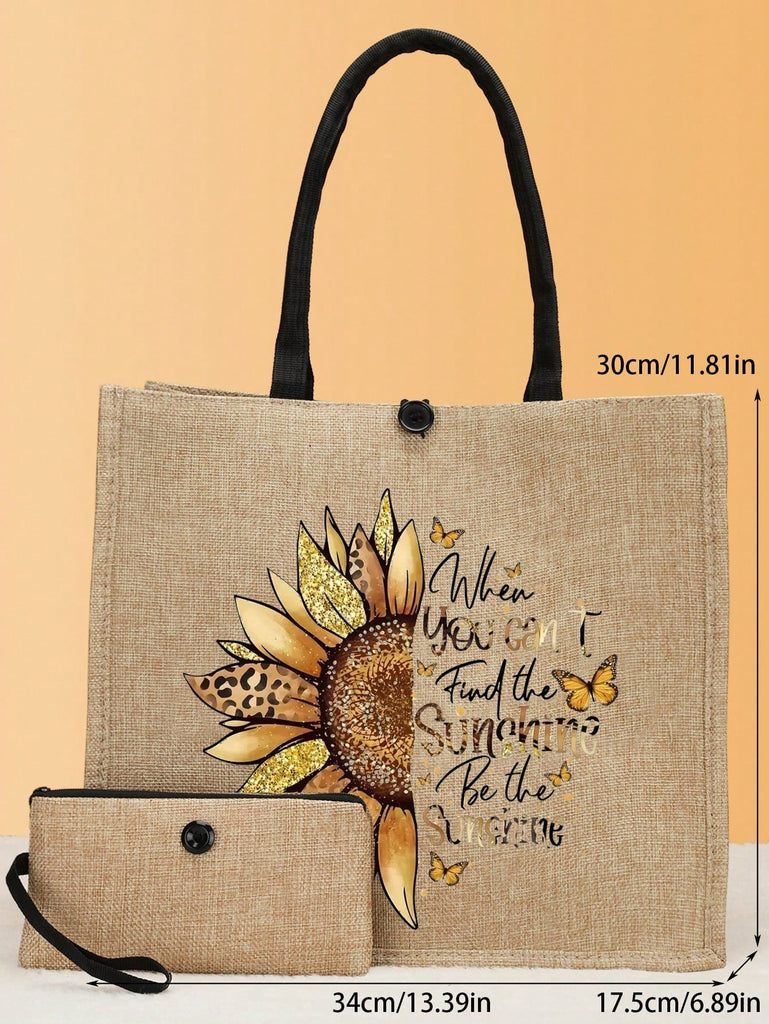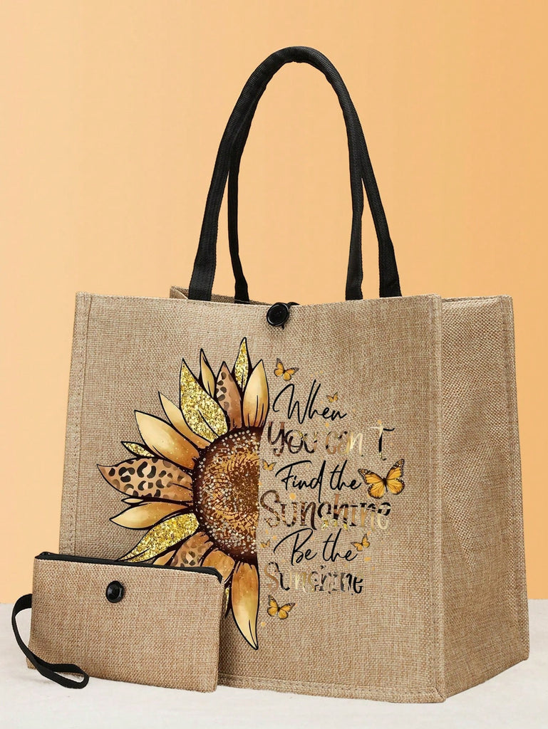 2pcs Cute & Elegant Sunflower Decorated Tote Bag, Suitable For Daily, Dating, Travel, Dinner Parties And More, Exquisite Floral Bag For Women