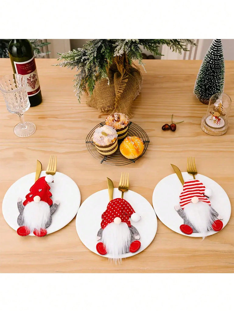3/6 Pieces Of Christmas Decorations, Faceless Old Man Knife And Fork Set, Excluding Knife And Fork