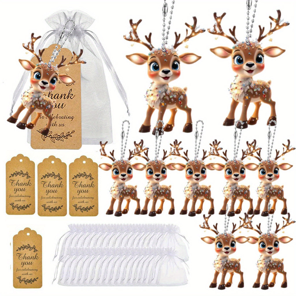 30pcs/10 Pack Christmas Deer Acrylic Keychain Favors, Cartoon Reindeer Keyring Party Gifts, with Organza Bags & Thank You Cards, for Wedding, Birthday, Anniversary, Bachelor Party, Holiday & Universal Celebrations, Animal Theme, Halloween, Best for Chris