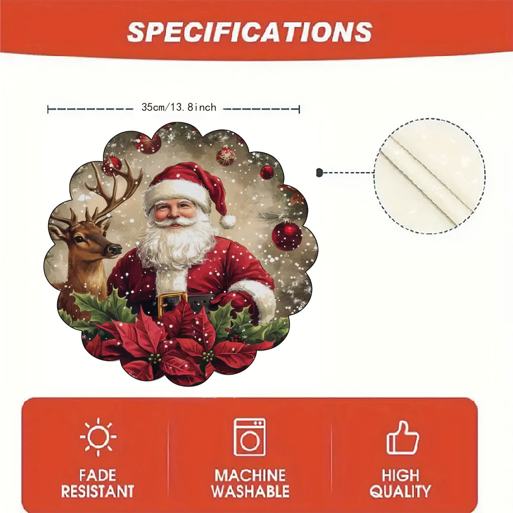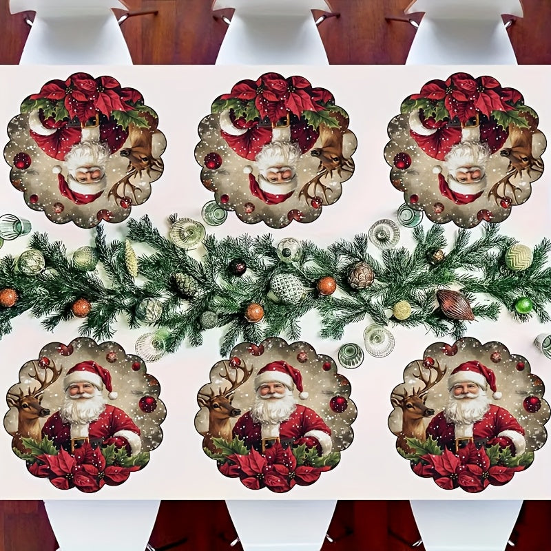4/6pcs Holiday Christmas Placemat Set - Polyester Round Table Mats with Santa and Reindeer Design, Suitable for Outdoor Festive Parties, Weddings, Home Decor, Formal Dinners | Luxurious Texture & Elegant Centerpiece, Perfect for Christmas, Halloween