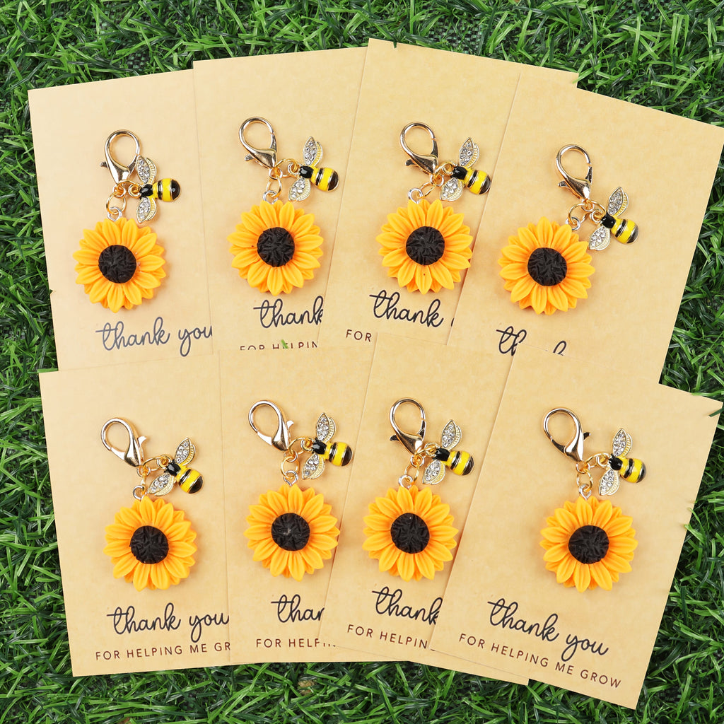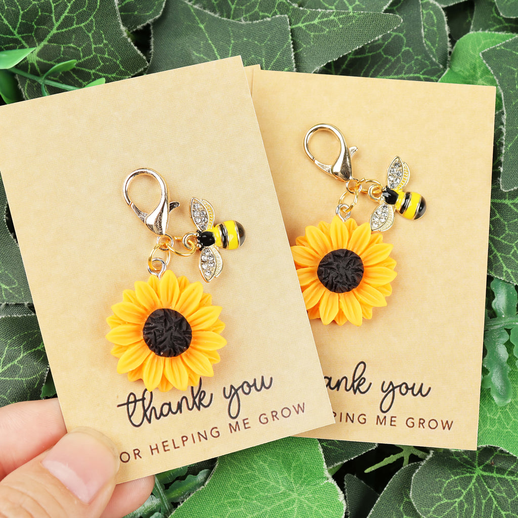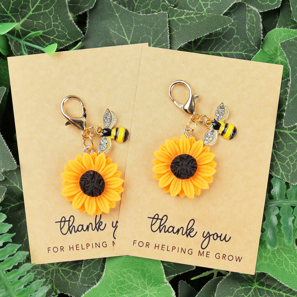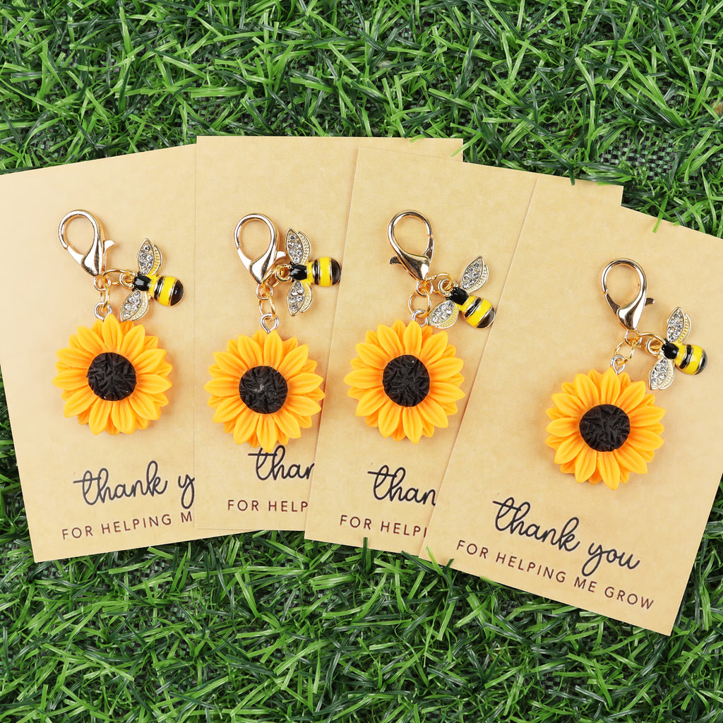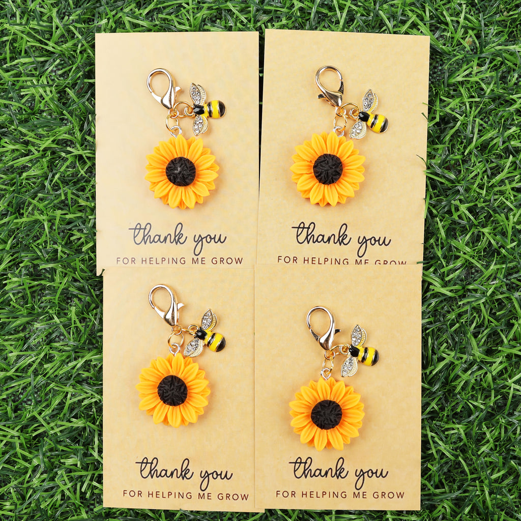 4pcs/8pcs Cartoon Bee Sunflower Keychain Set with Thank You for Helping Me Grow Card, Hard Work Gift, Animal and Floral Combination, Resin Sunflower, Alloy Bee with Design, Perfect Teacher, Friend, Family Parent Appreciation Gift, Bag Charm, Phone Case P
