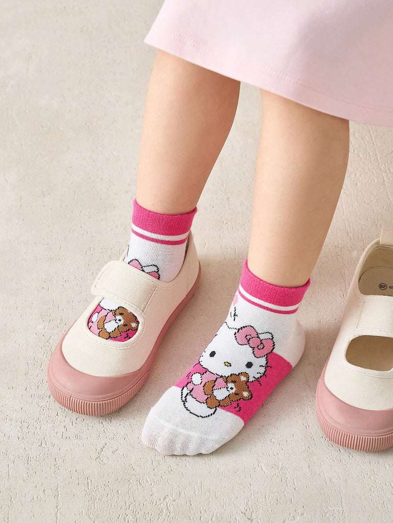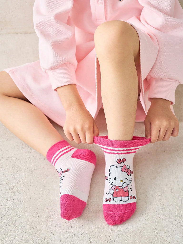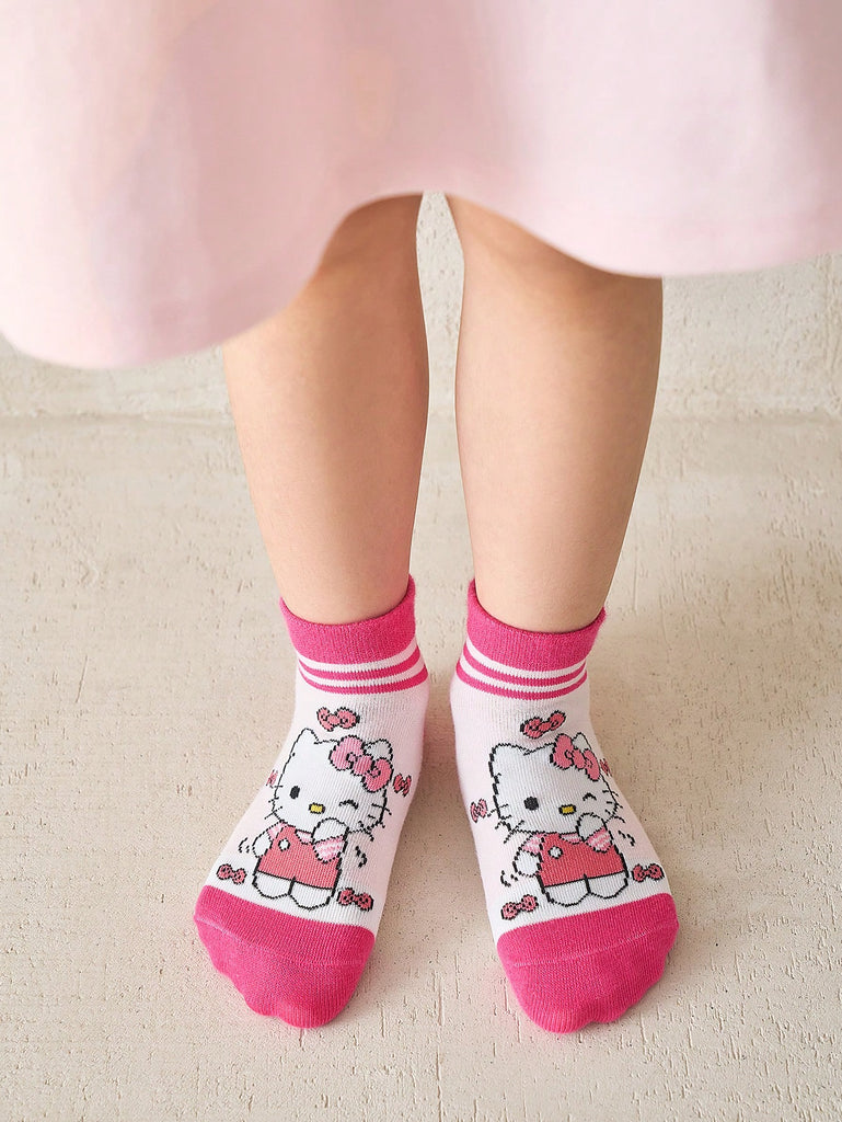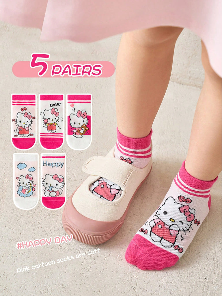 5 Pairs Sanrio Girls Short Socks, Adorable Soft Cute Pink Cat/Bow/Cloud/Letter Pattern Decorative Socks, Fashion Casual Sports Socks, Skin-Friendly Soft Breathable Short Socks, Suitable For Daily Wear, Holidays, Trips, Parties, Back To School