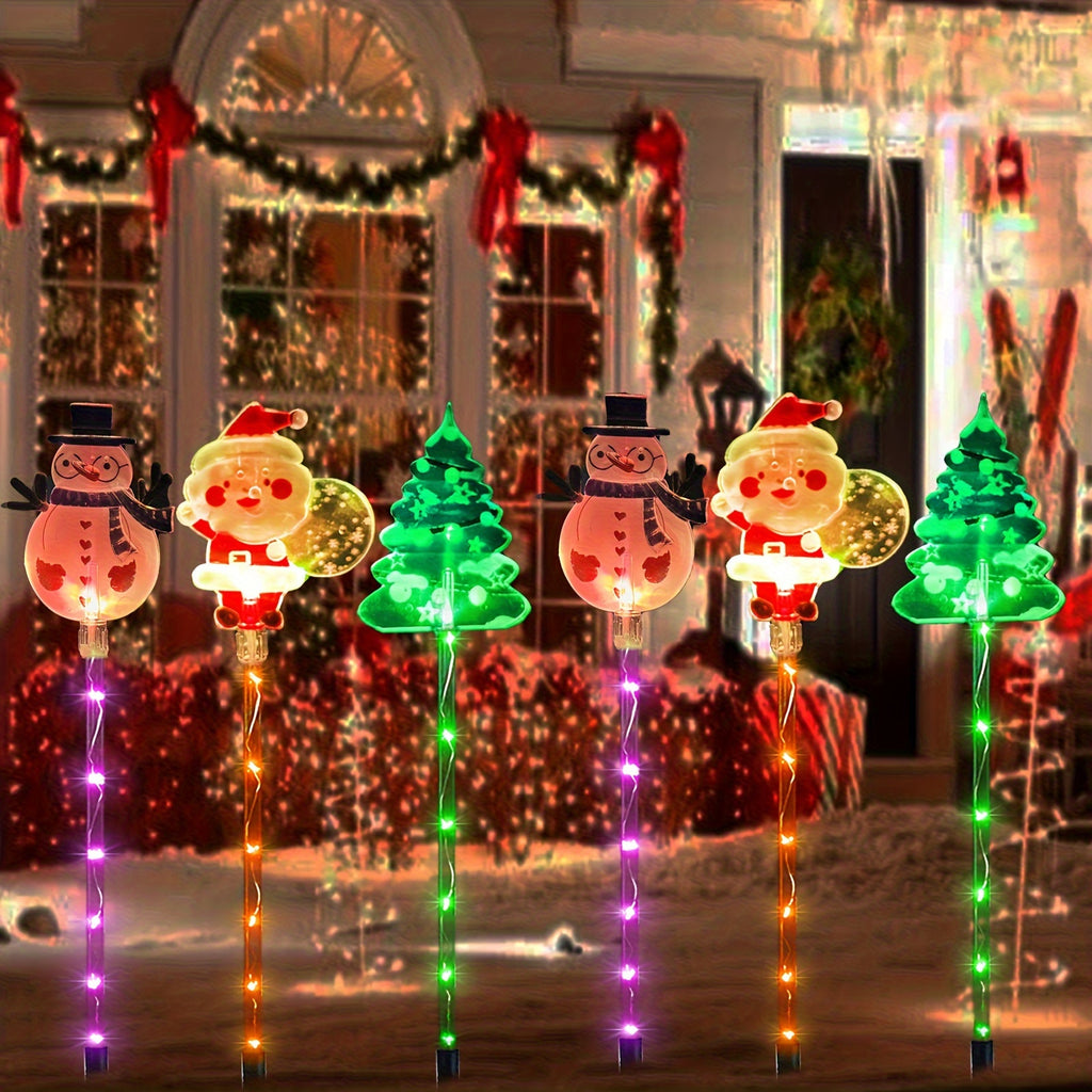 6pcs Outdoor Solar Christmas Garden Stake Lights, Solar Powered Santa Claus, Snowman & Christmas tree Lights, 8 Mode Lighting LED Landscape Lighting for Patio Yard Garden Lawn Pathway Holiday Winter Christmas Decoration, Festive Yard Decor, Seasonal Deco