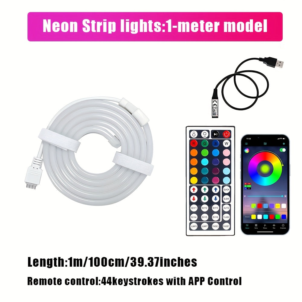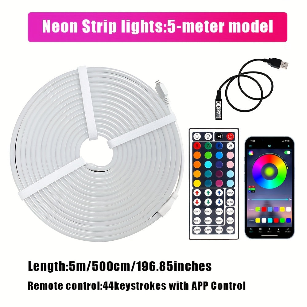 91.44-487.68cm Long Smart LED Neon Rope Lights, USB Interface, LED Lights with APP And 44keys Remote Control, Suitable for Ambient Lighting In Bedrooms, Living Rooms, Game Rooms Decor