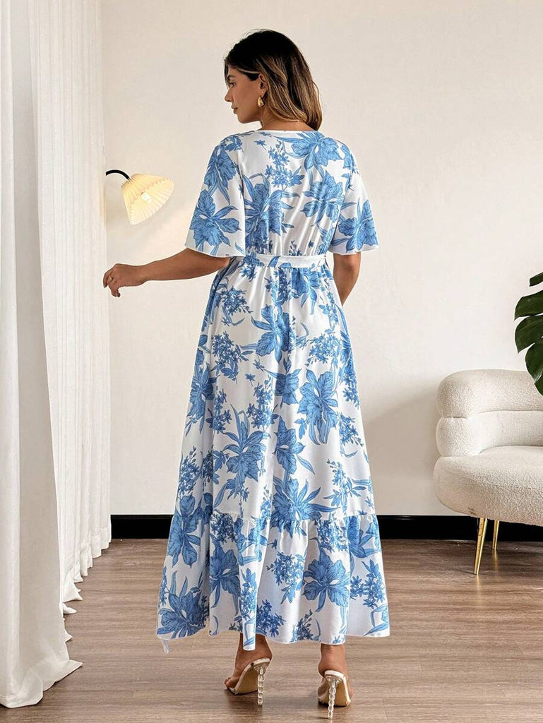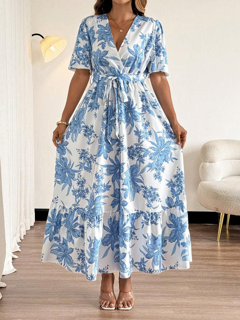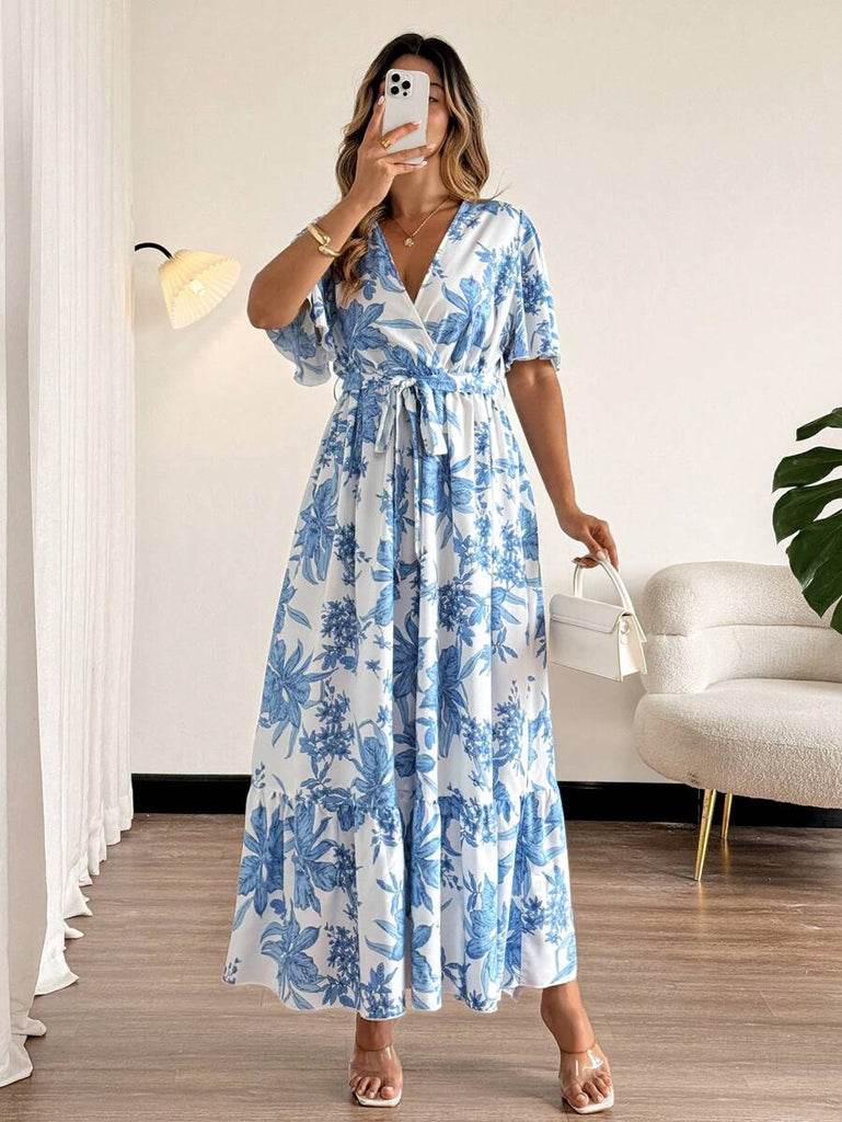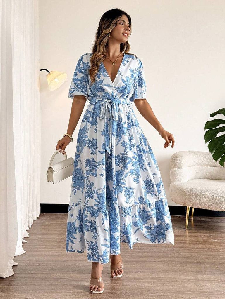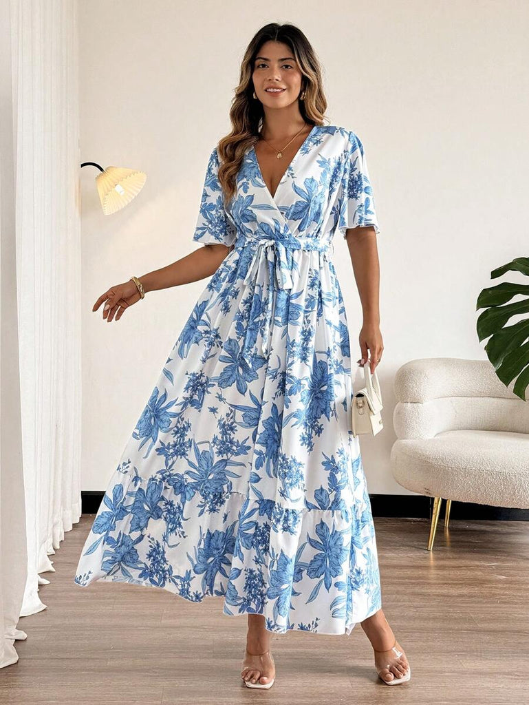 Breezaya Plus Size Tropical Resort Abstract Art Print Wrap V-Neck Ruffle Hem Vacation Dress Women Summer Clothing Women Plus Sun Dress Woman S Summer Clothes Work Summer Dresses Women Short Dresses Summer