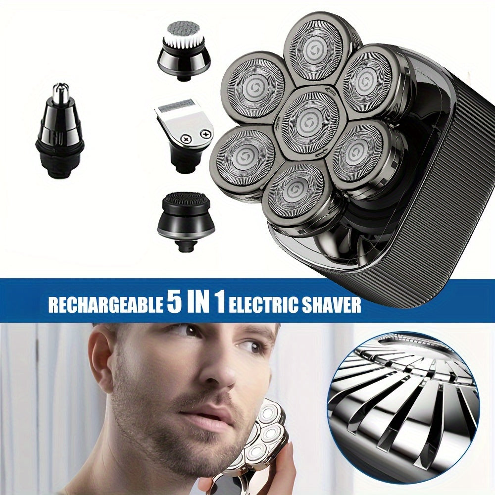 CHIN 5-in-1 Rechargeable Electric Head Shaver for Men - Wet/ Bald Head Grooming Kit, Beard Trimmer, Sleek Design, Highquality Trimmer, Durable Blades, Wet And Dry Shaver, Barber Tools, Men's Grooming