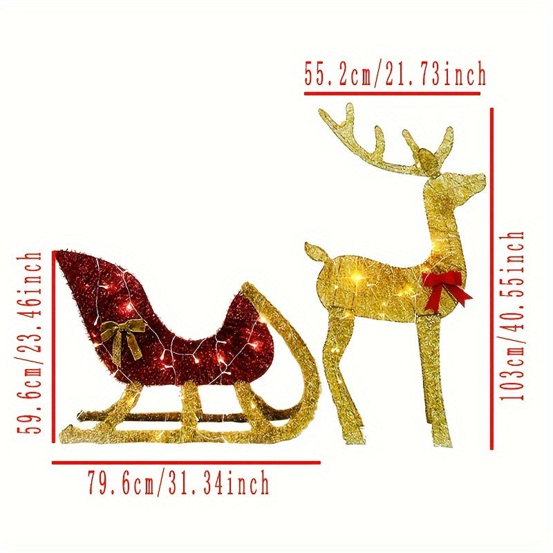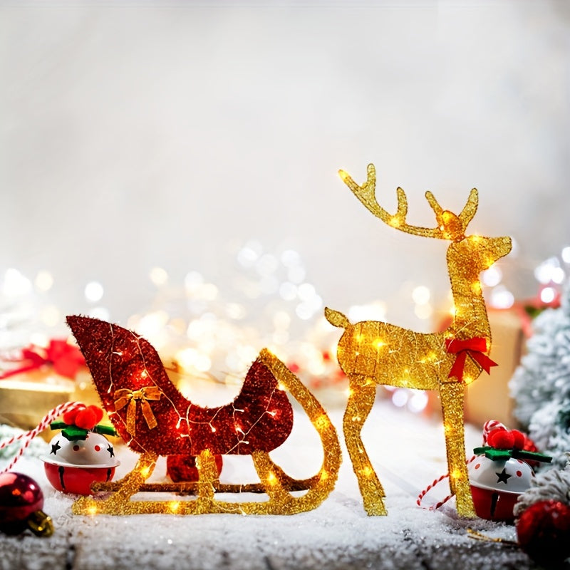 Christmas Reindeer Sleigh Outdoor Decoration Set with LED Lights, Metal Holiday Yard Display, Animal Theme, Battery Operated with Button Control, Adjustable White Illumination, AA Battery Required, Festive Ornament for Seasonal Decor
