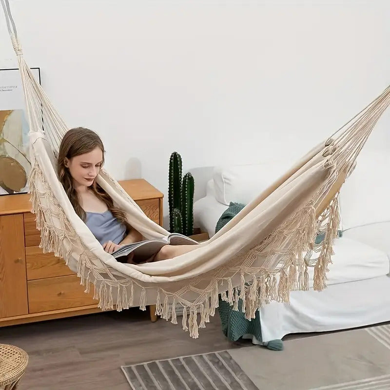 Double Hammock with Tassels- Anti-Tipping, Breathable Canvas Swing, Suitable for Outdoor Leisure and Picnics, Portable Outdoor Hammock, Hammocks For Outside, Camping Equipment And Accessories, Double Hammock With Mosquito Net, Hammock For Camping Heavy D