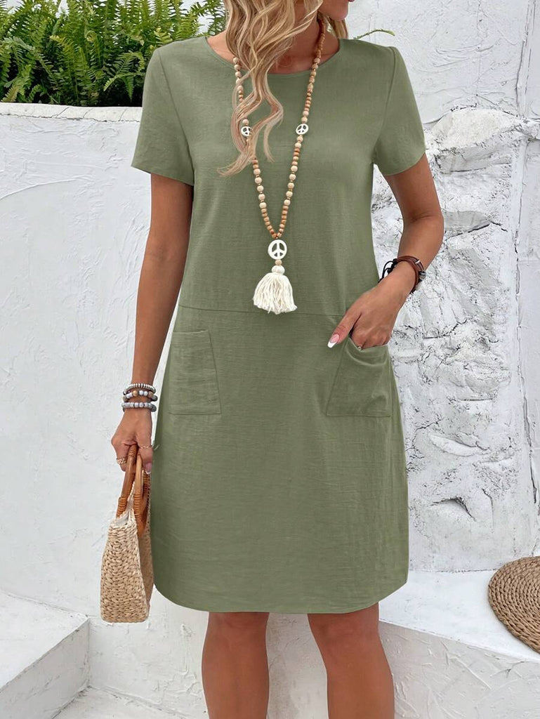 EMERY ROSE Women's Solid Color Short Sleeve Casual Dress For Summer,Summer Dresses For Women