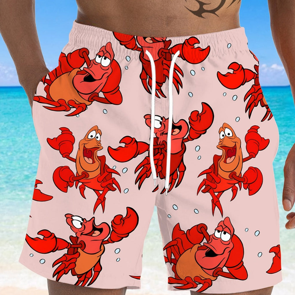 Men'S Casual Beach Shorts with 3D Crab Print - Lightweight, Non-Stretch Fabric, Drawstring Waist, Perfect for Summer Parties & Vacations, Vacation Shorts | Playful Print Shorts | Lightweight Shorts, Plus Size